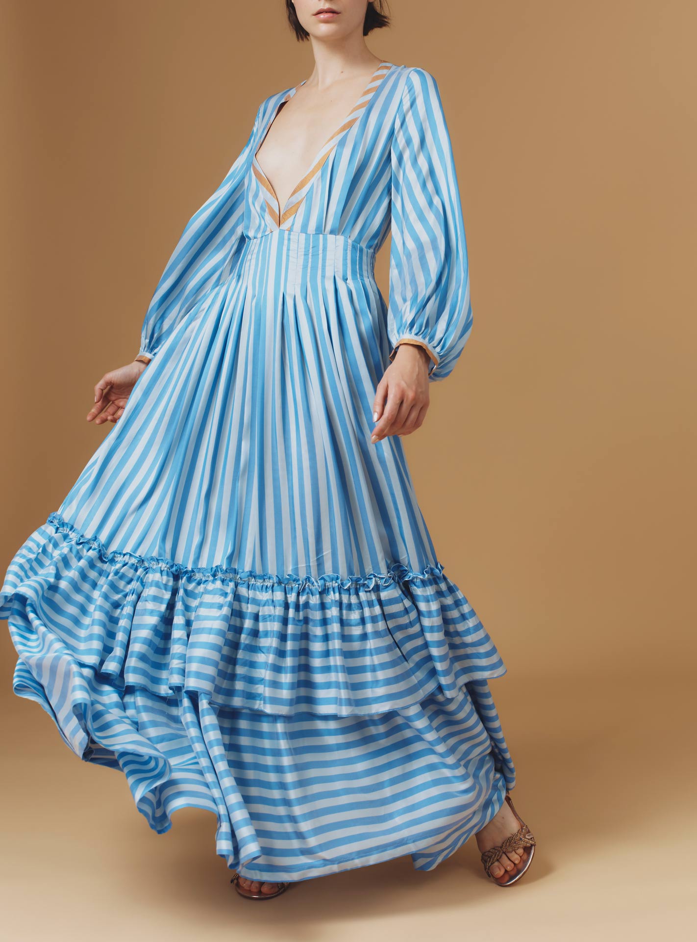 Zadig Long Dress - Bouboulina Stripes - Sapphire / Brandy