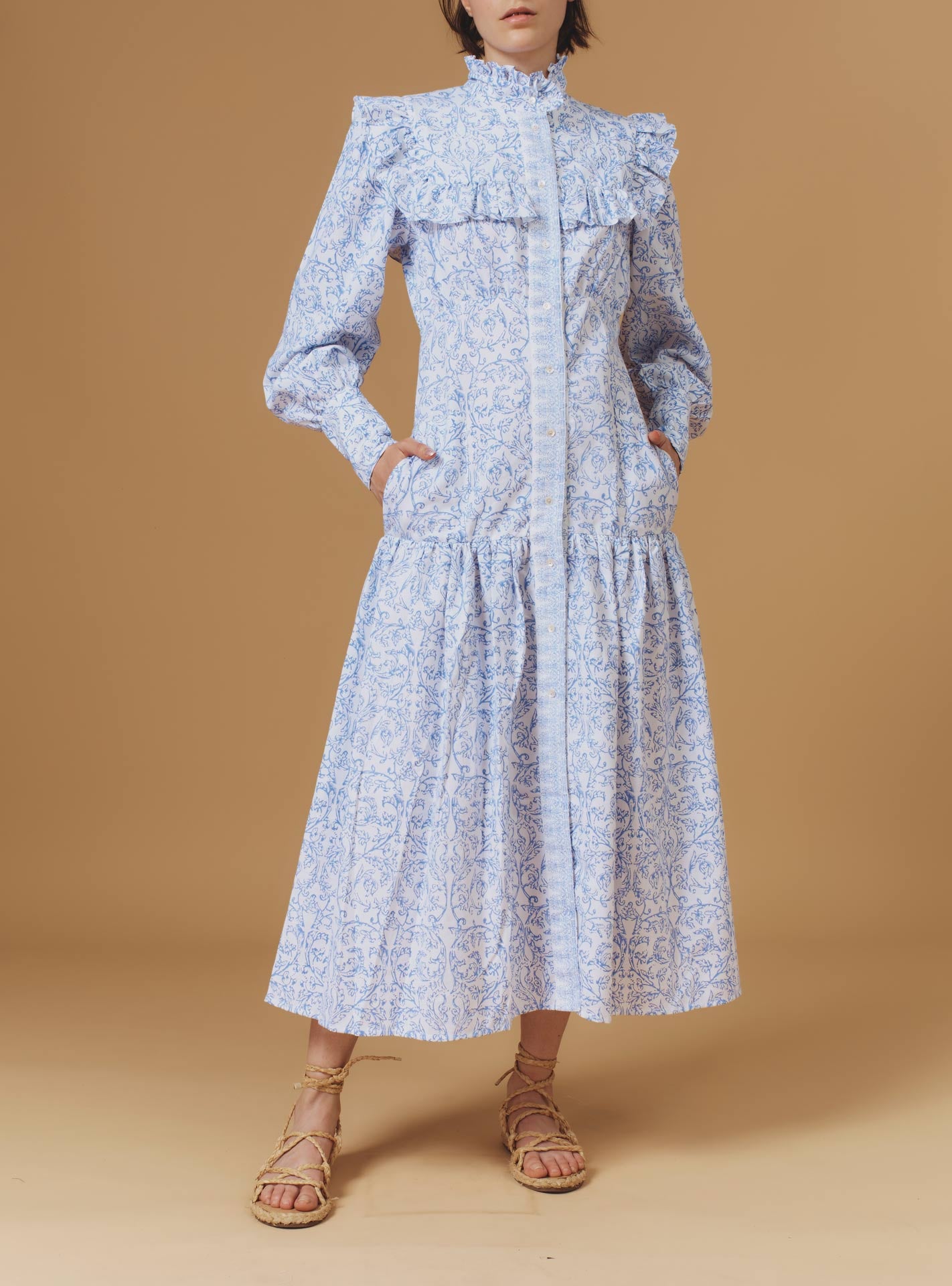 Slip into the romantic ZELDA long dress inspired by Loulou de la Falaise and her mix of britishness & Parisian chic.