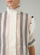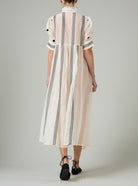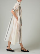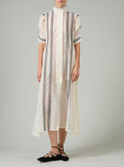 Venetia Dress - Chanderi Checks & Dots Embroidery - Ivory
