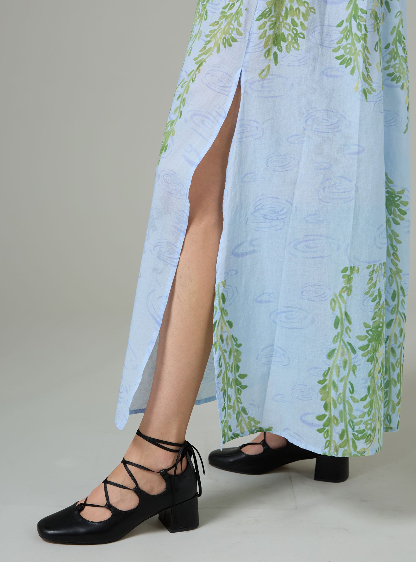 Rachel Long Kaftan - Weeping Willow Print Voile - Blue & Green