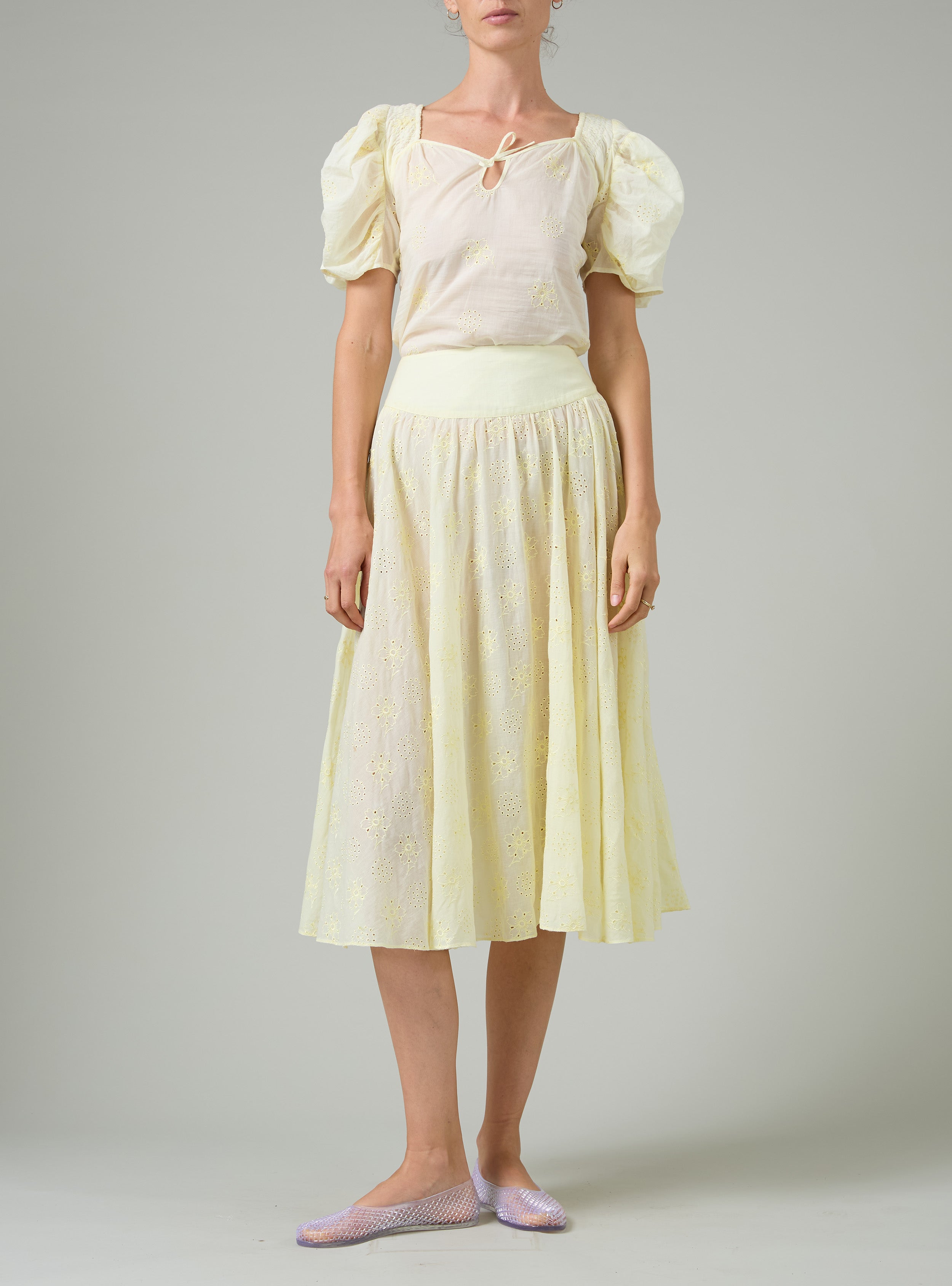 Pamela Skirt - Tender Yellow - Floral Eyelet