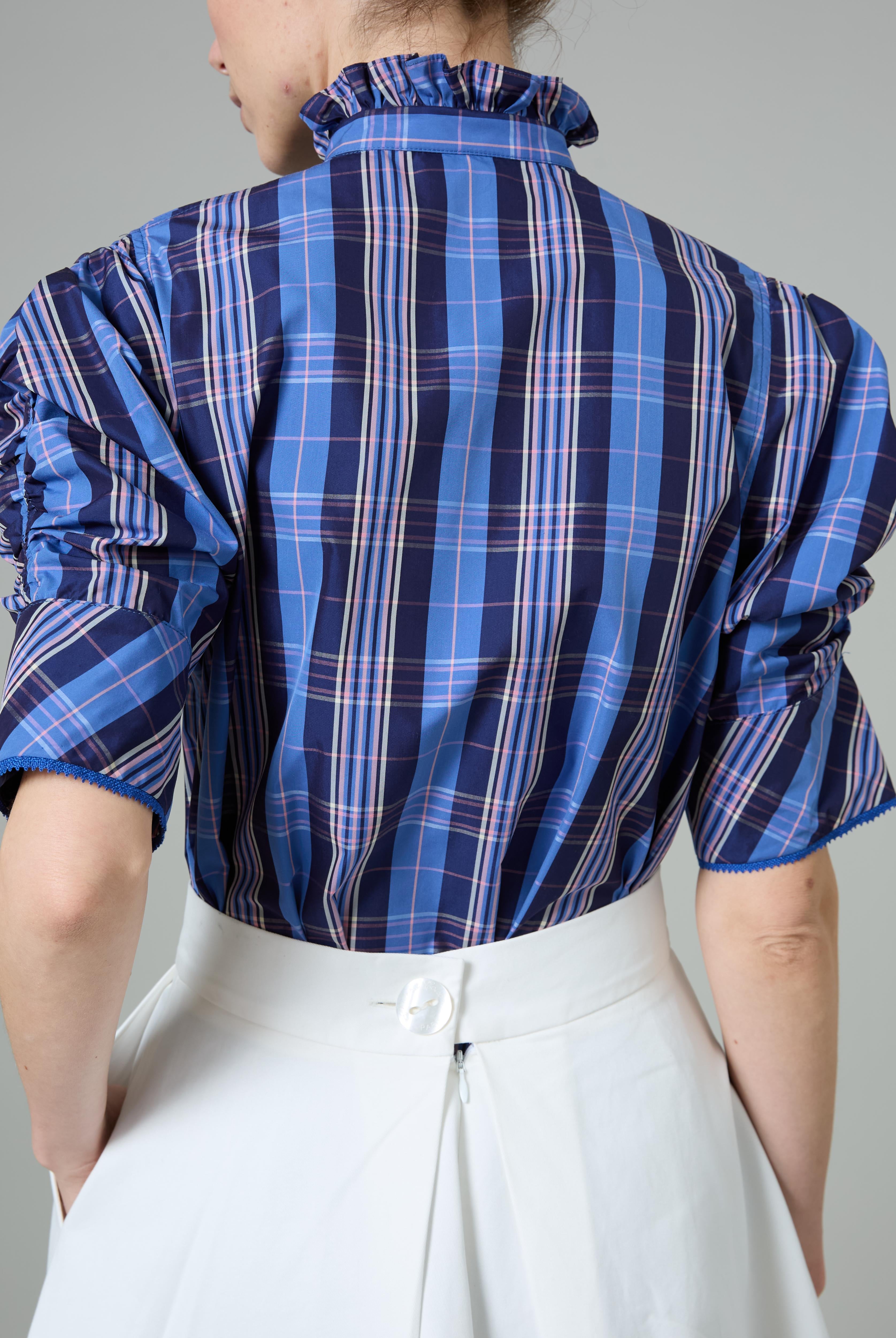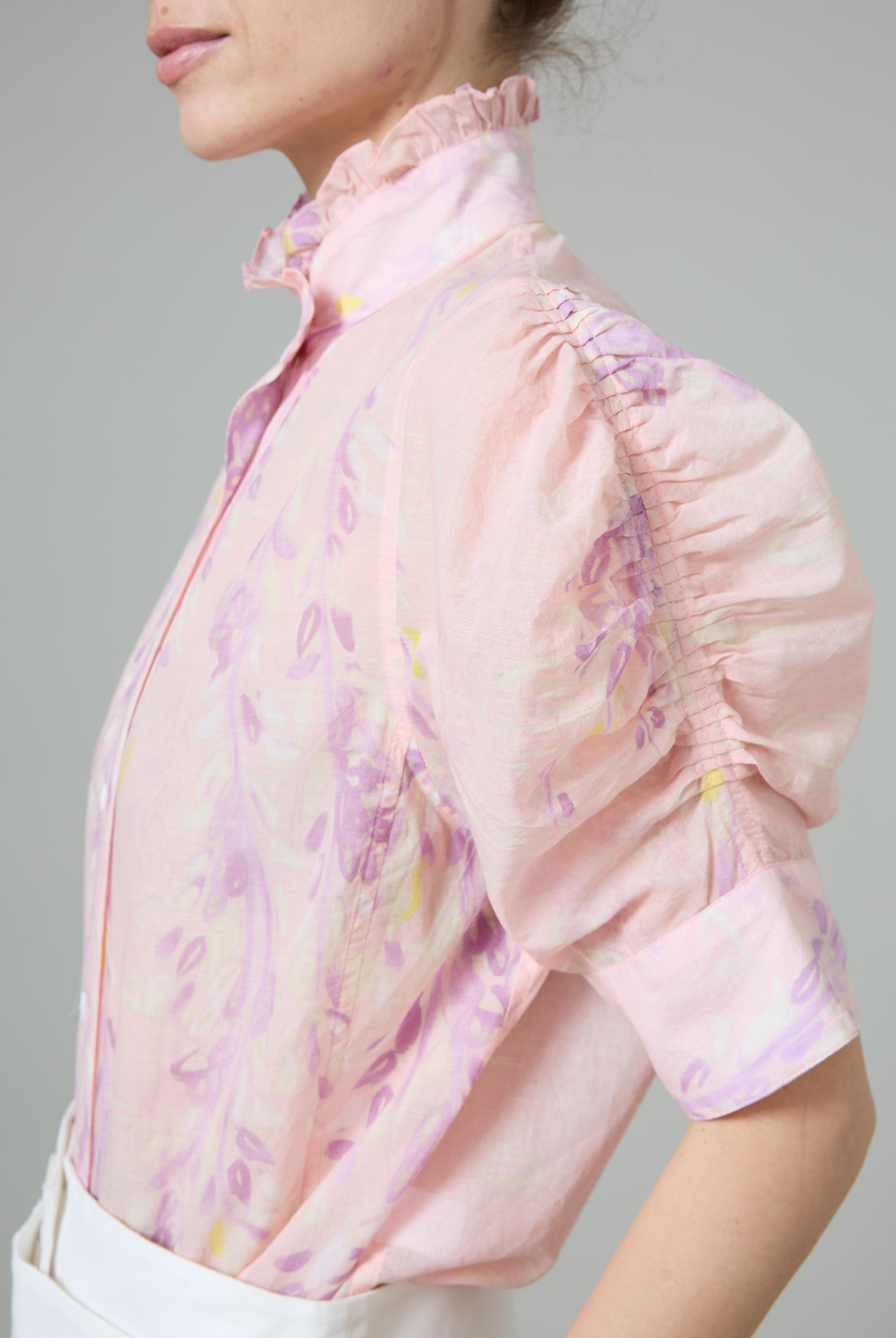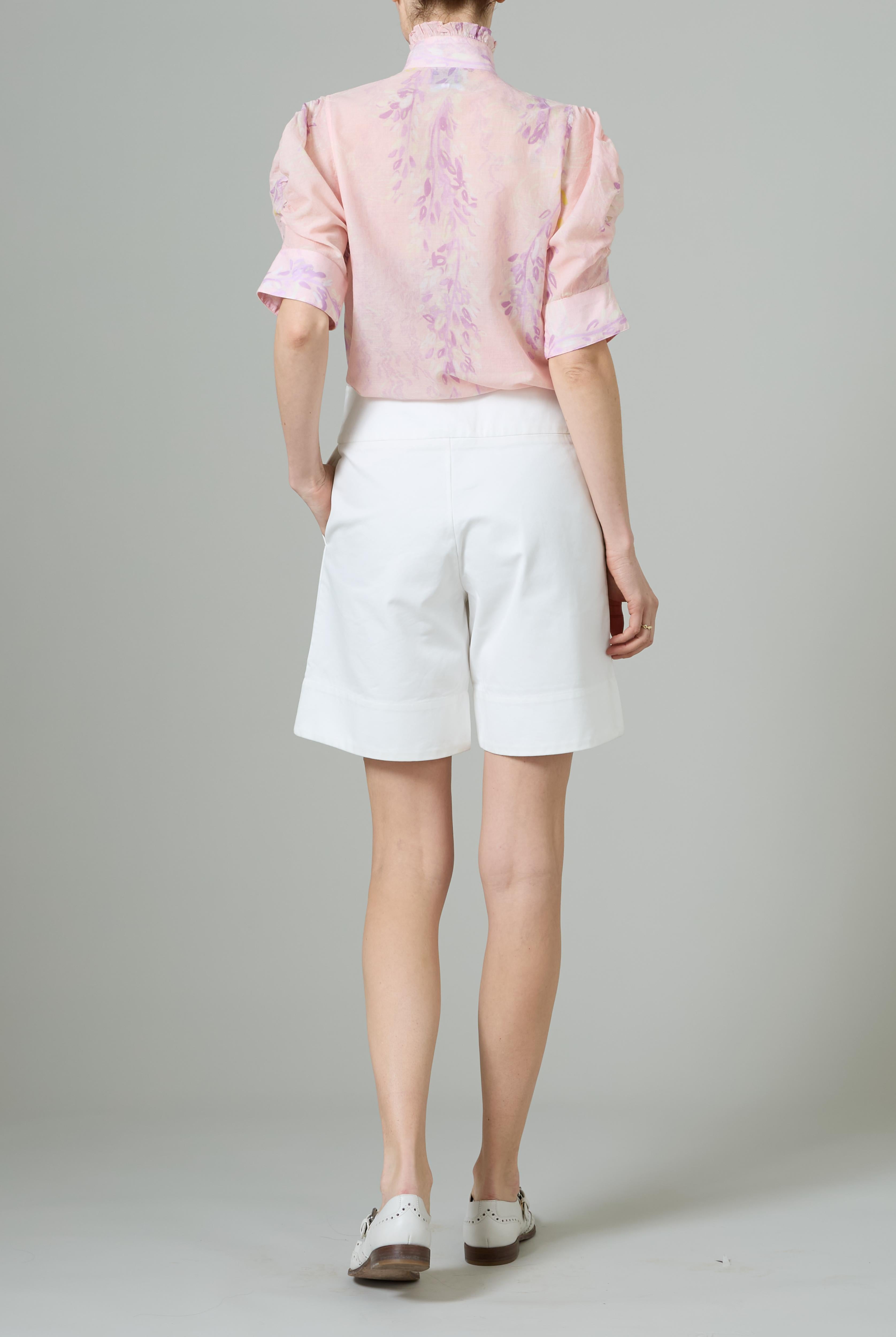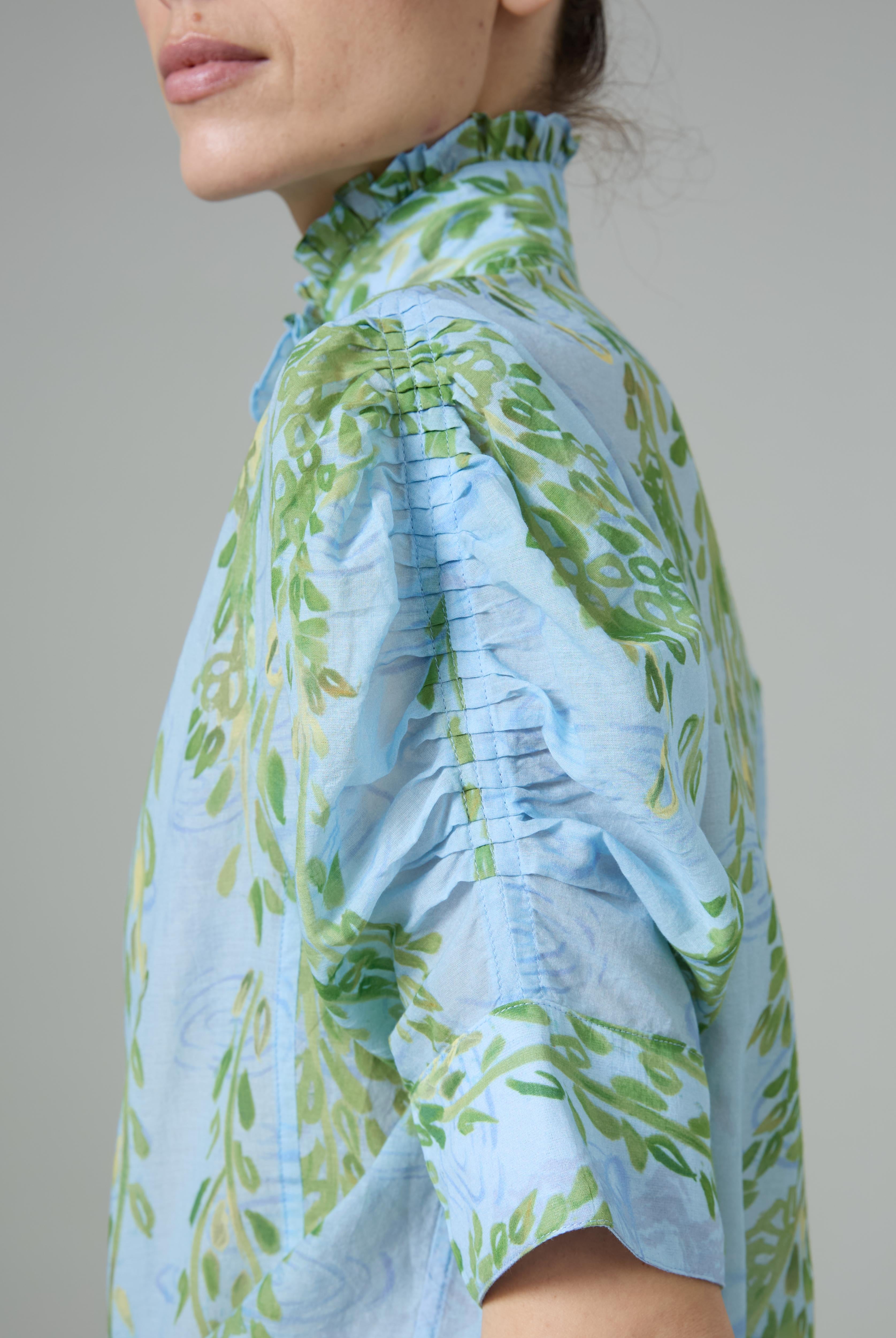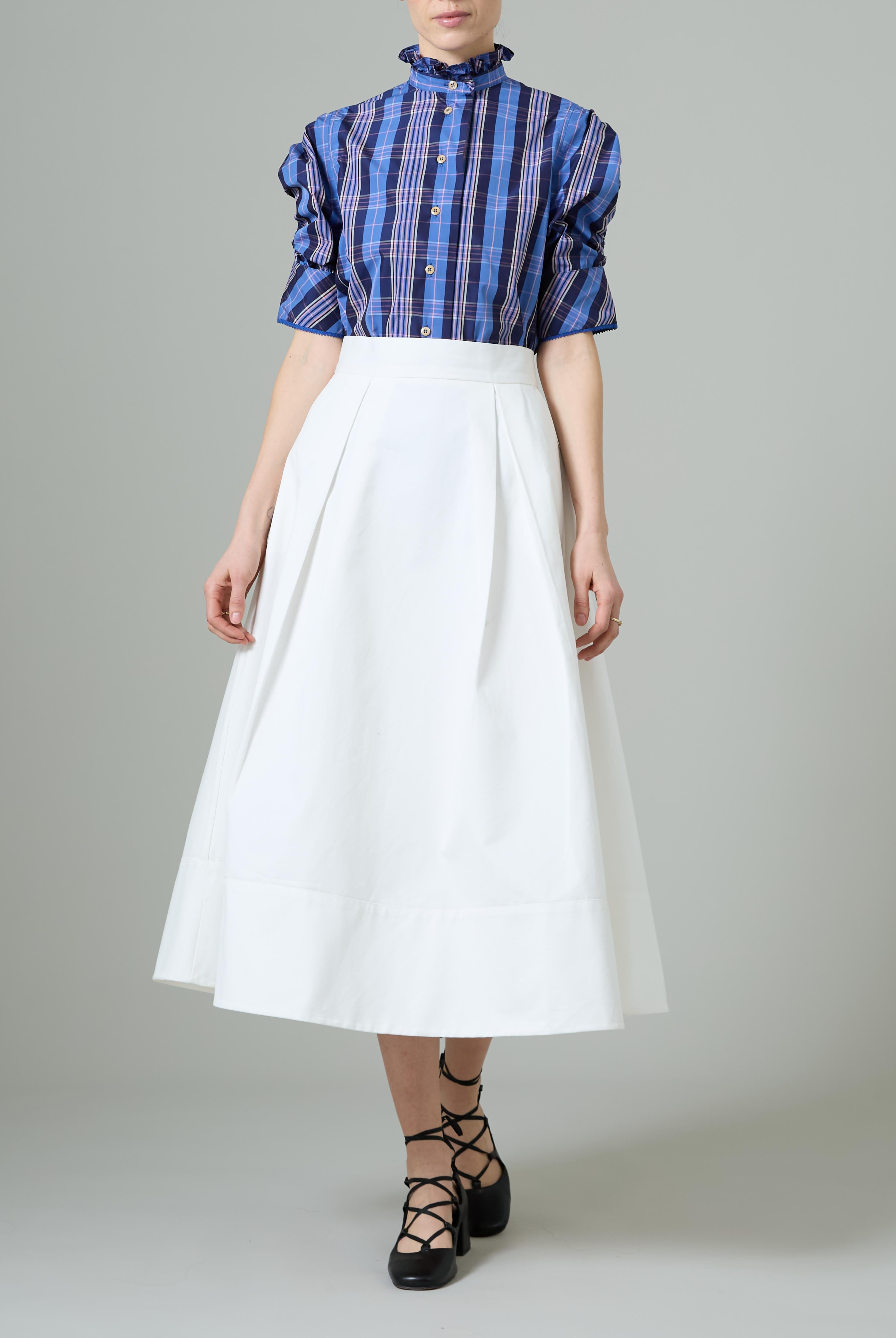 This sophisticated VITA blouse channels Edwardian elegance with its dramatic Gigot sleeves and delicate ruffle collar. Crafted in lightweight cotton voile, it features an intricate floral eyelet pattern that catches the light beautifully. The soft, tender yellow hue brings warmth and joy to any wardrobe. Style it with our Pamela full circle skirt for a complete, romantic look.