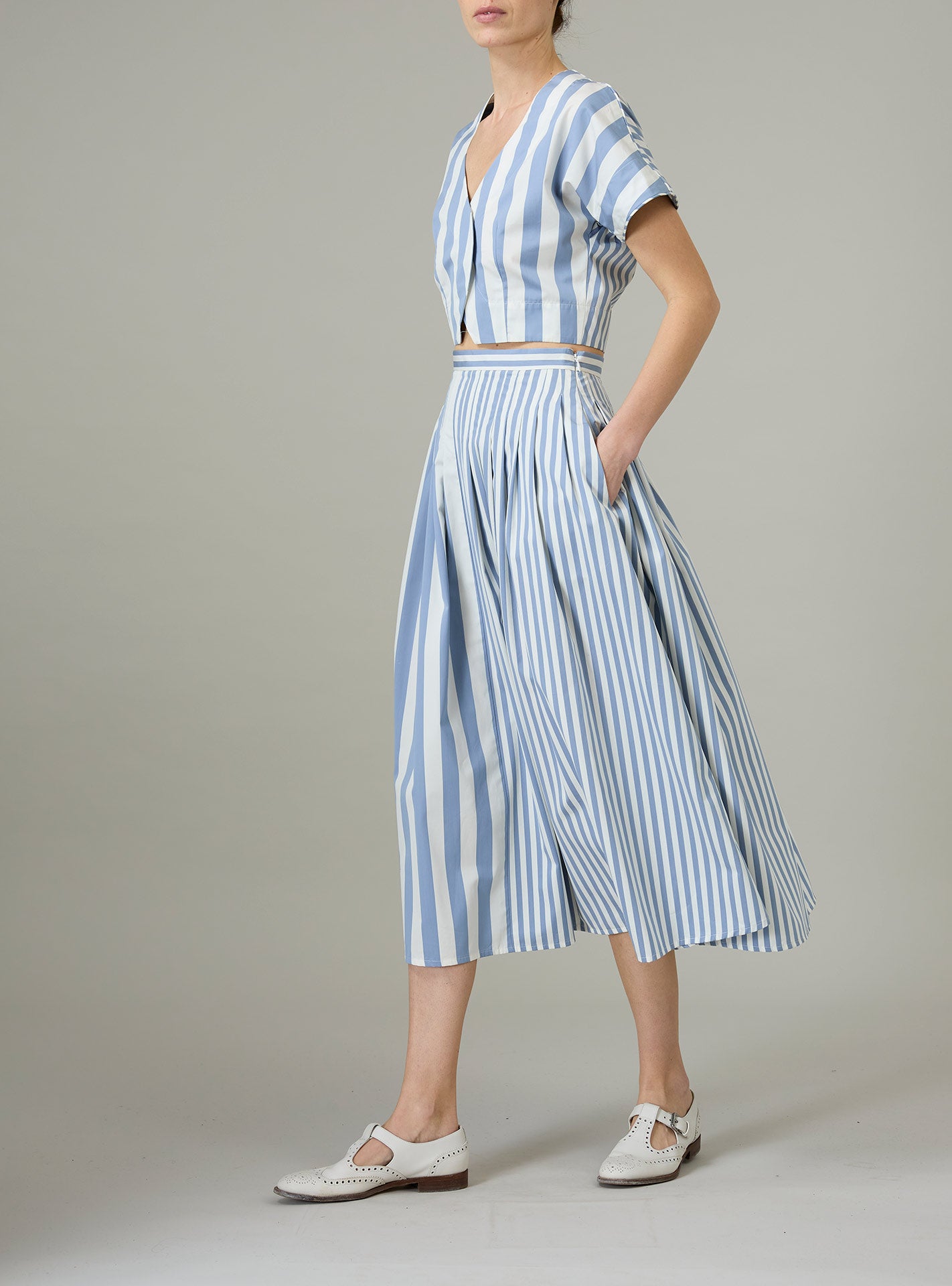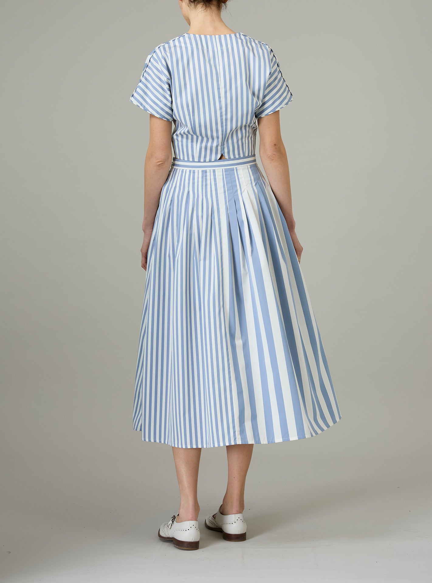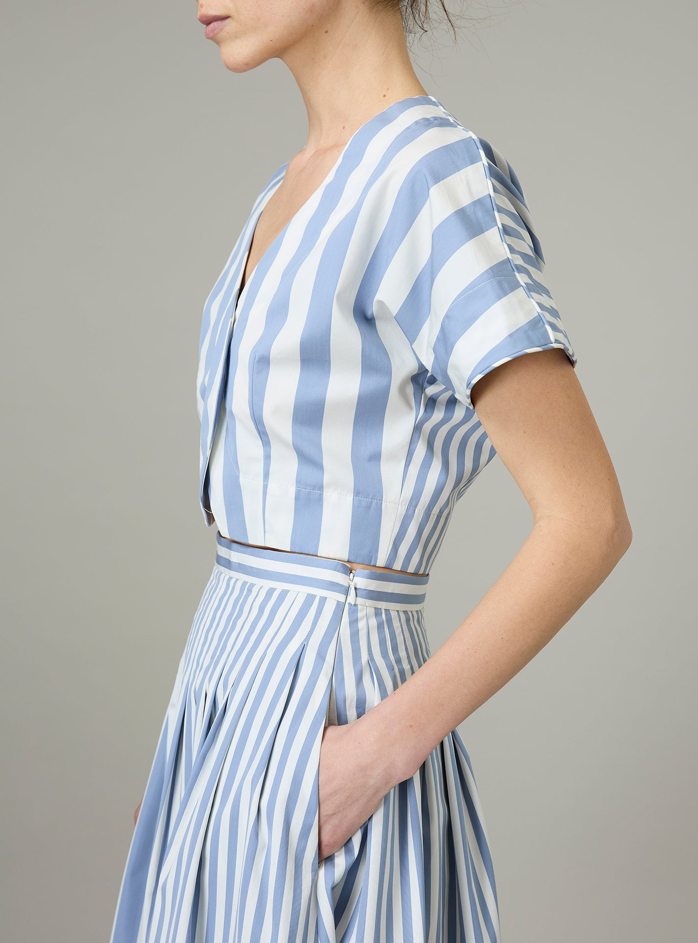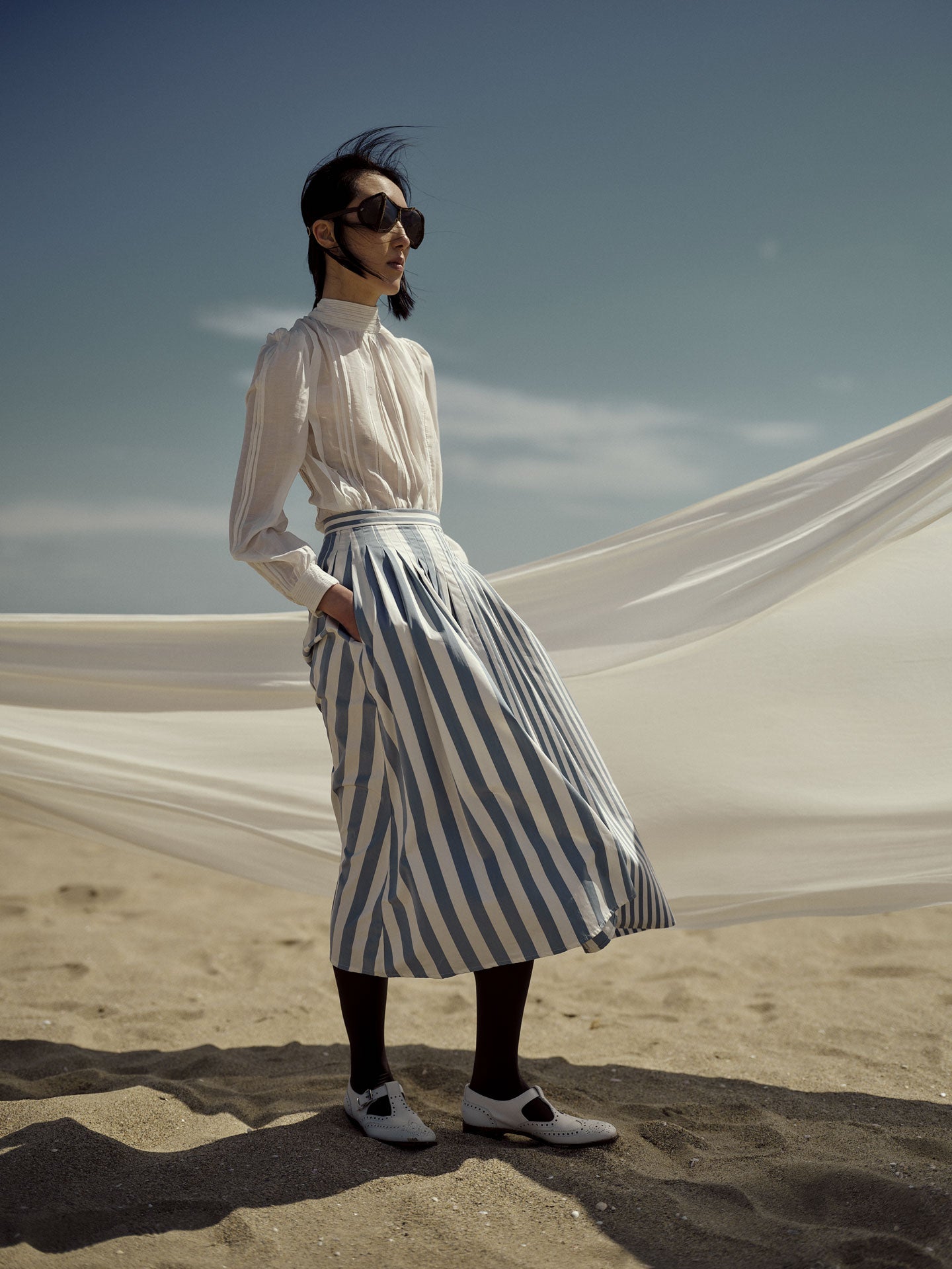 For the summer 2025 collection, I came across this fine crispy poplin called ‘Lady Poplin’, thin and light as a cigarette paper and decline it in three different shades: Office blue, Turtledove and biscuit to build a fresh, chic and modern wardrobe.”