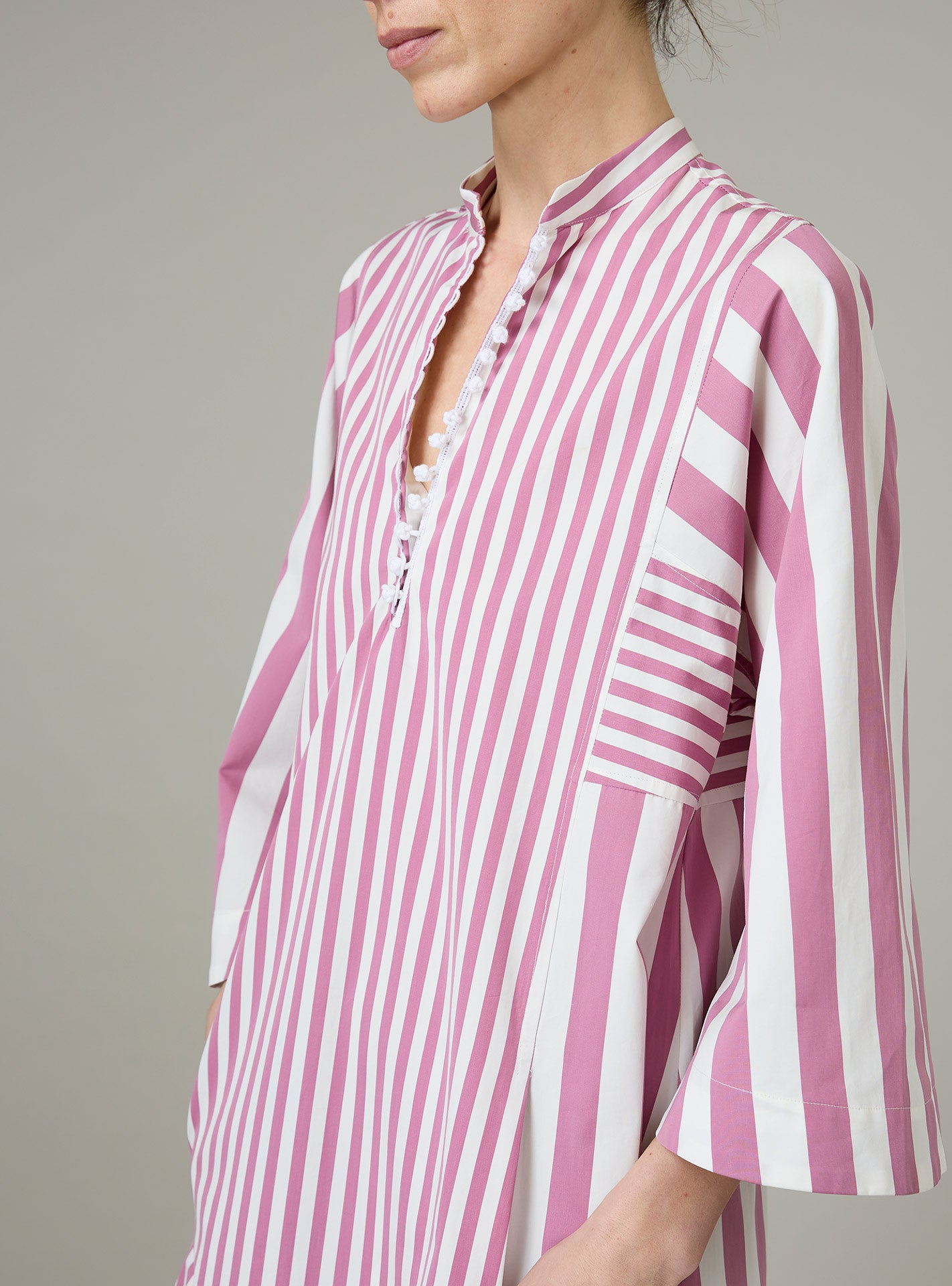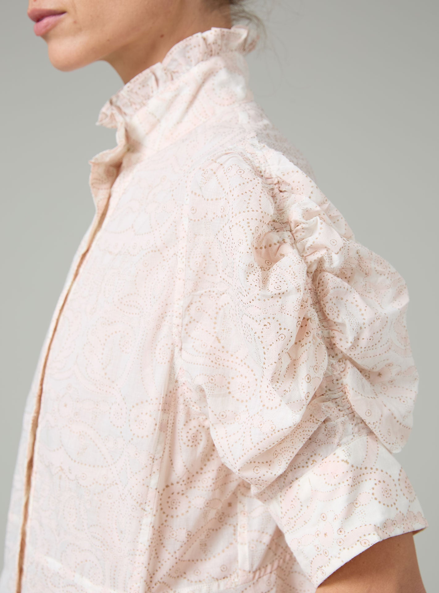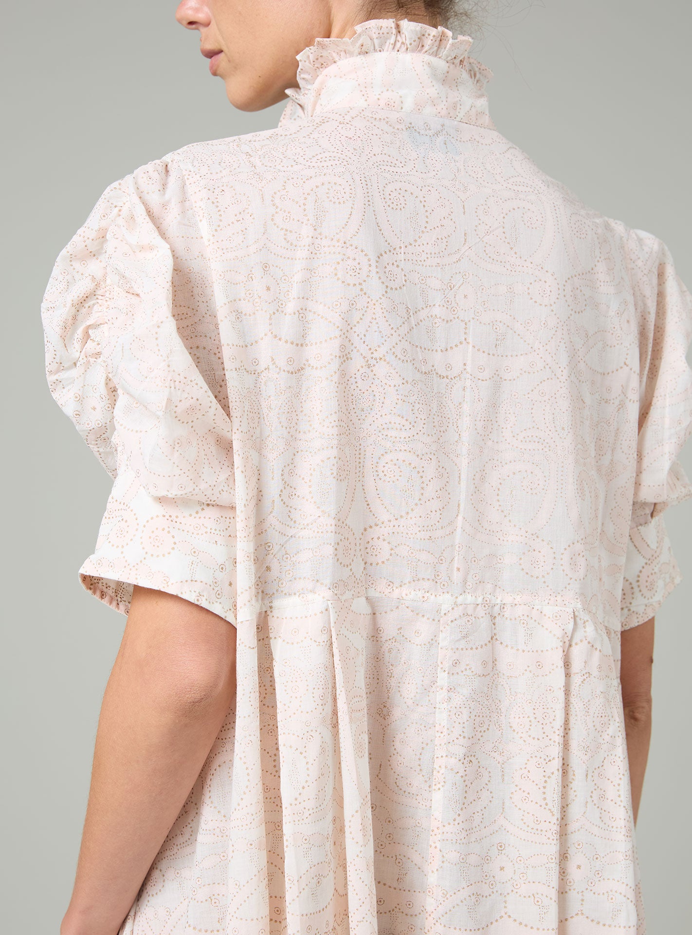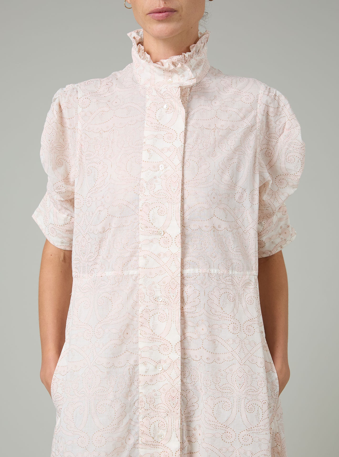 Hand-embroidered either on a dobby soft cotton voile, either on a crispy poplin, we played two colour ways: