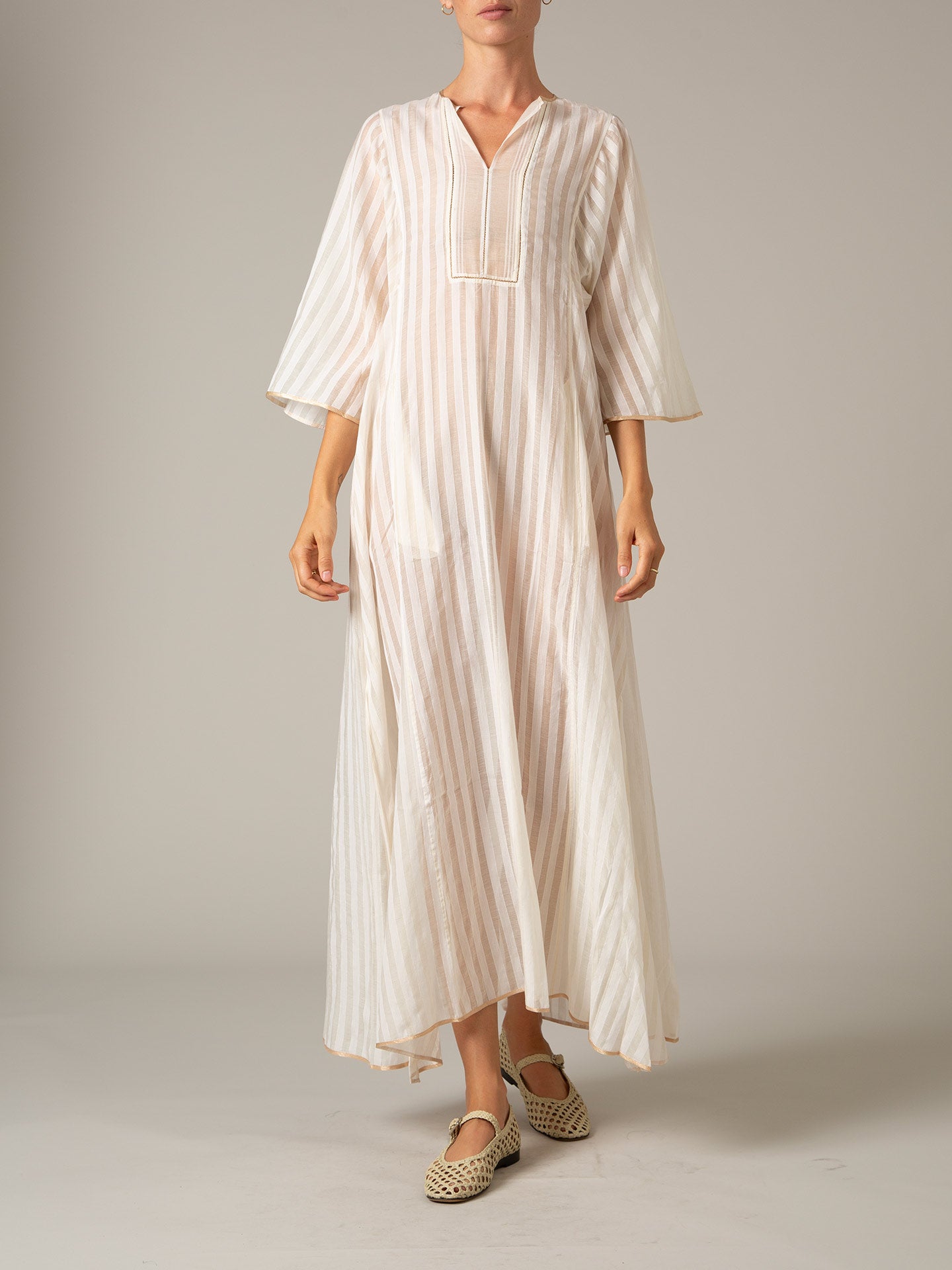 Rachel long Kaftan & Slip Dress - Delphi Chanderi - Ecru