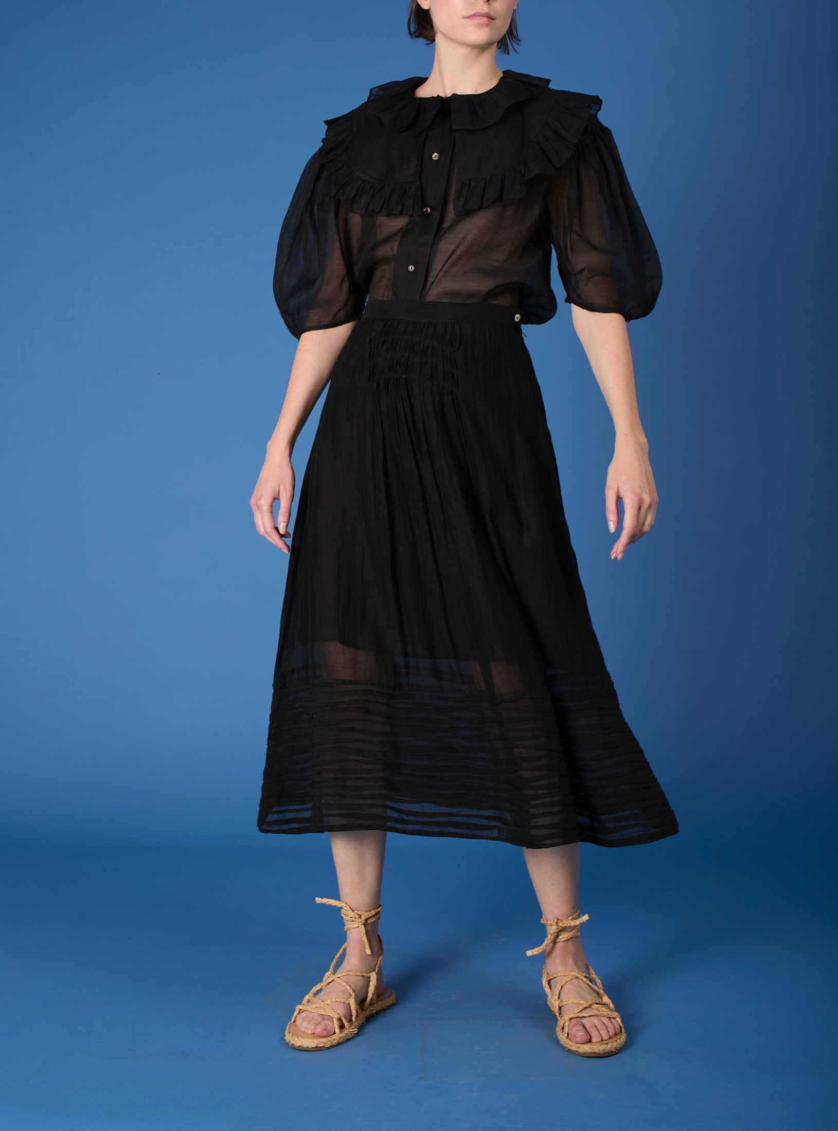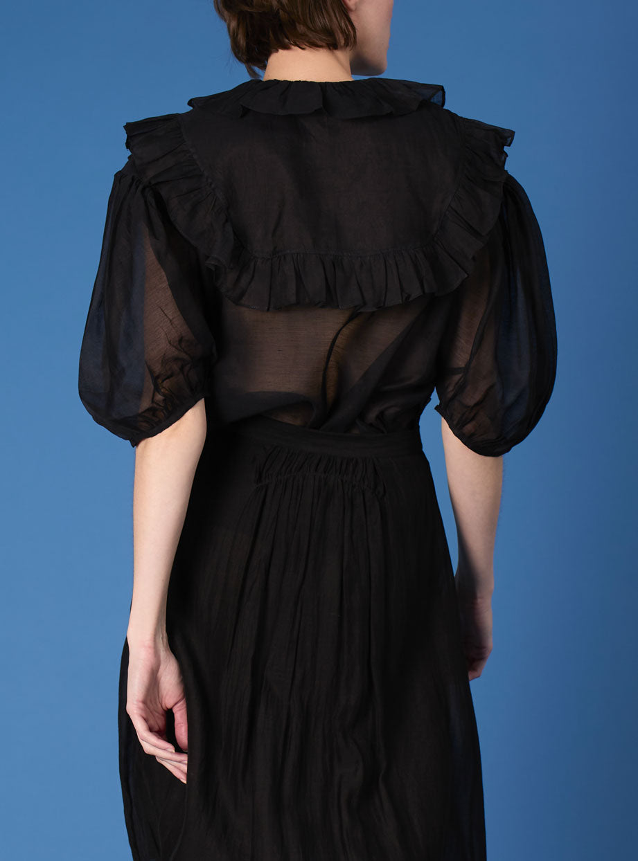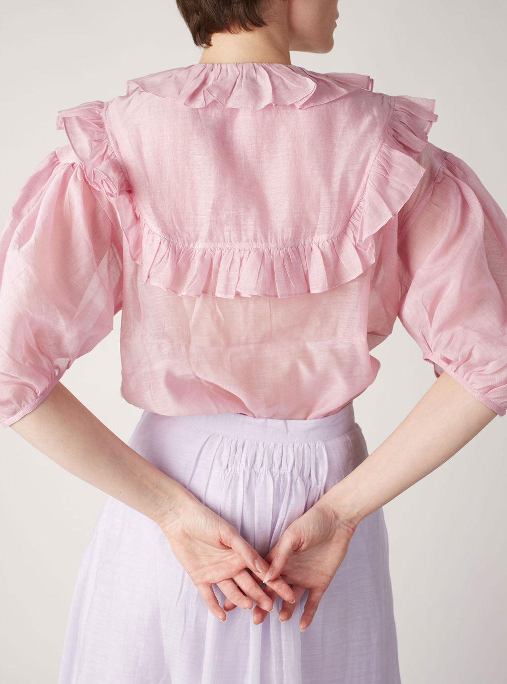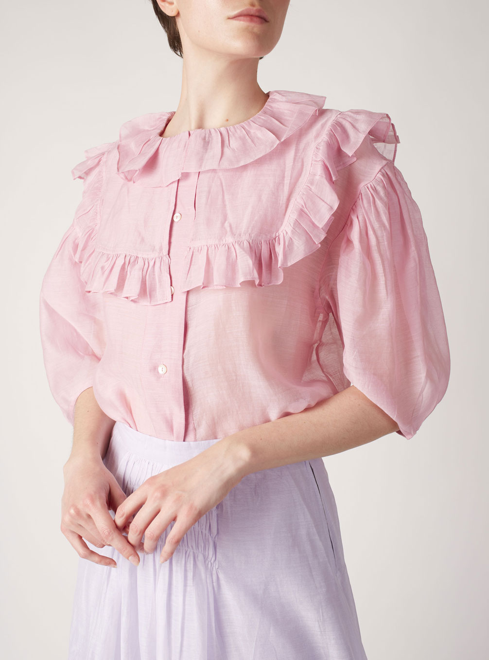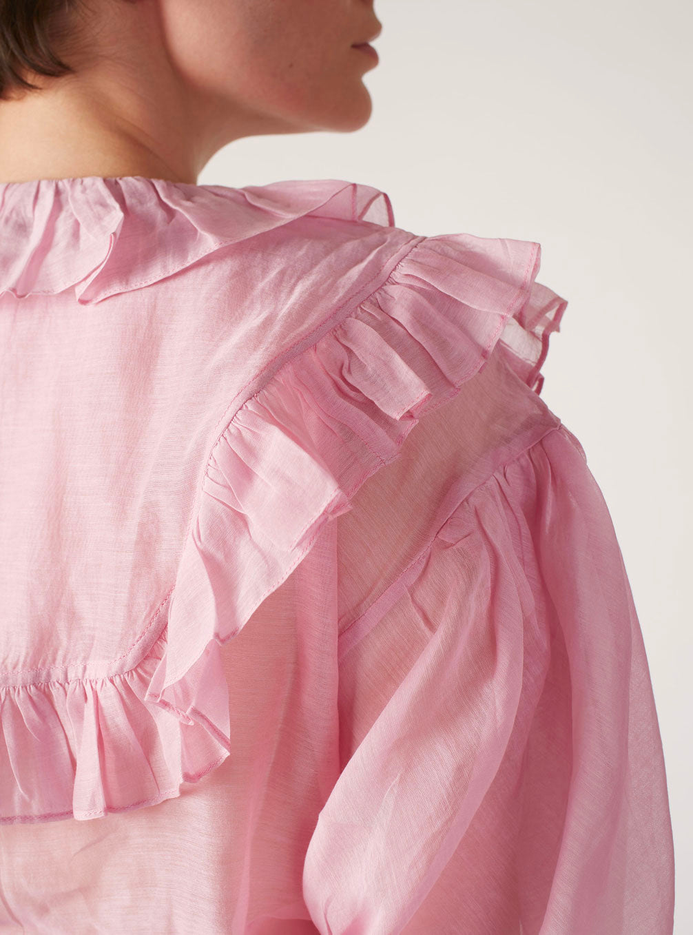 The Vanina Romantic blouse, with its ruffled collar and embellished yoke is easy to wear for many different occasions.