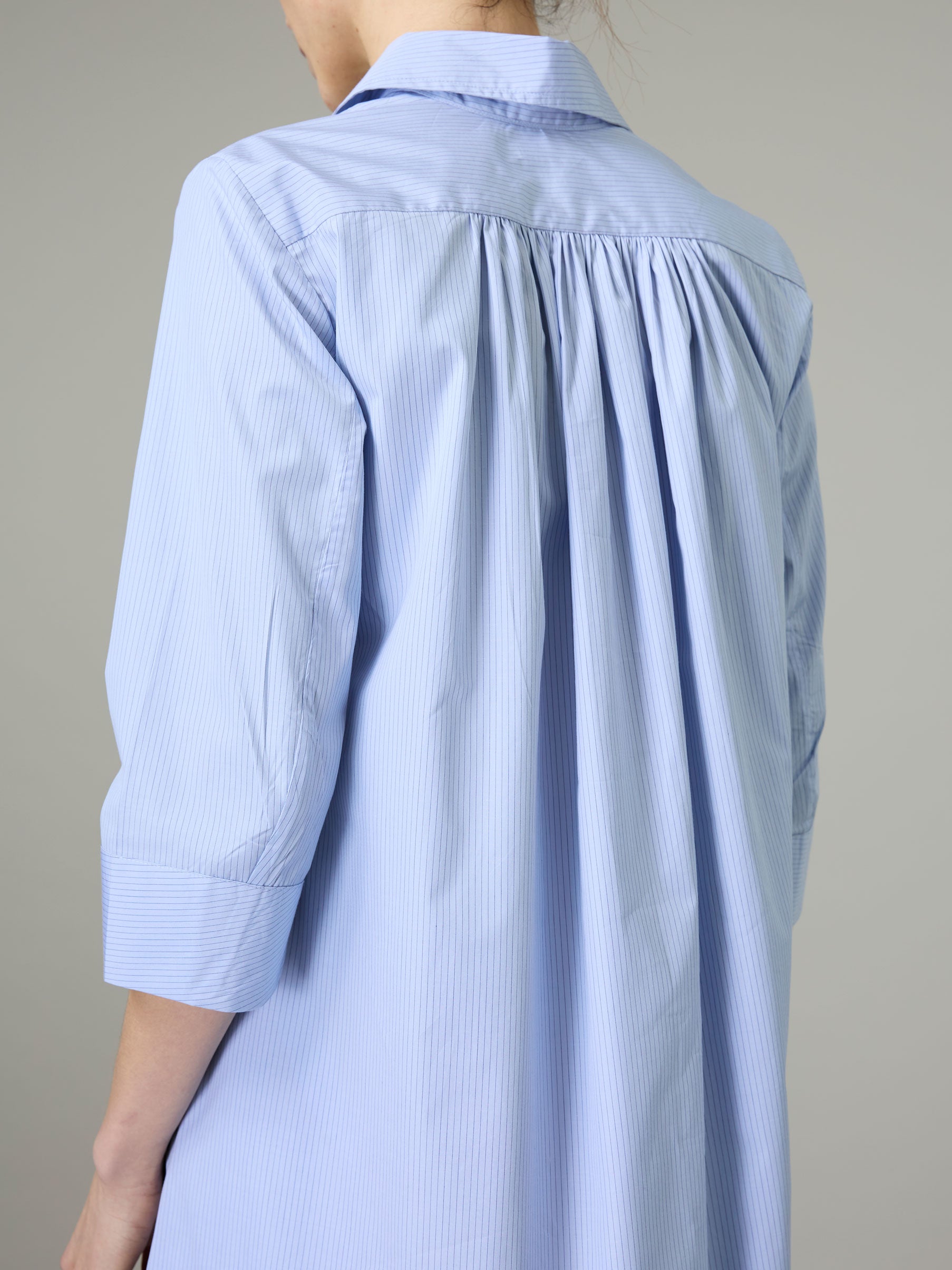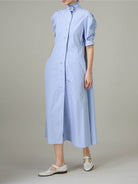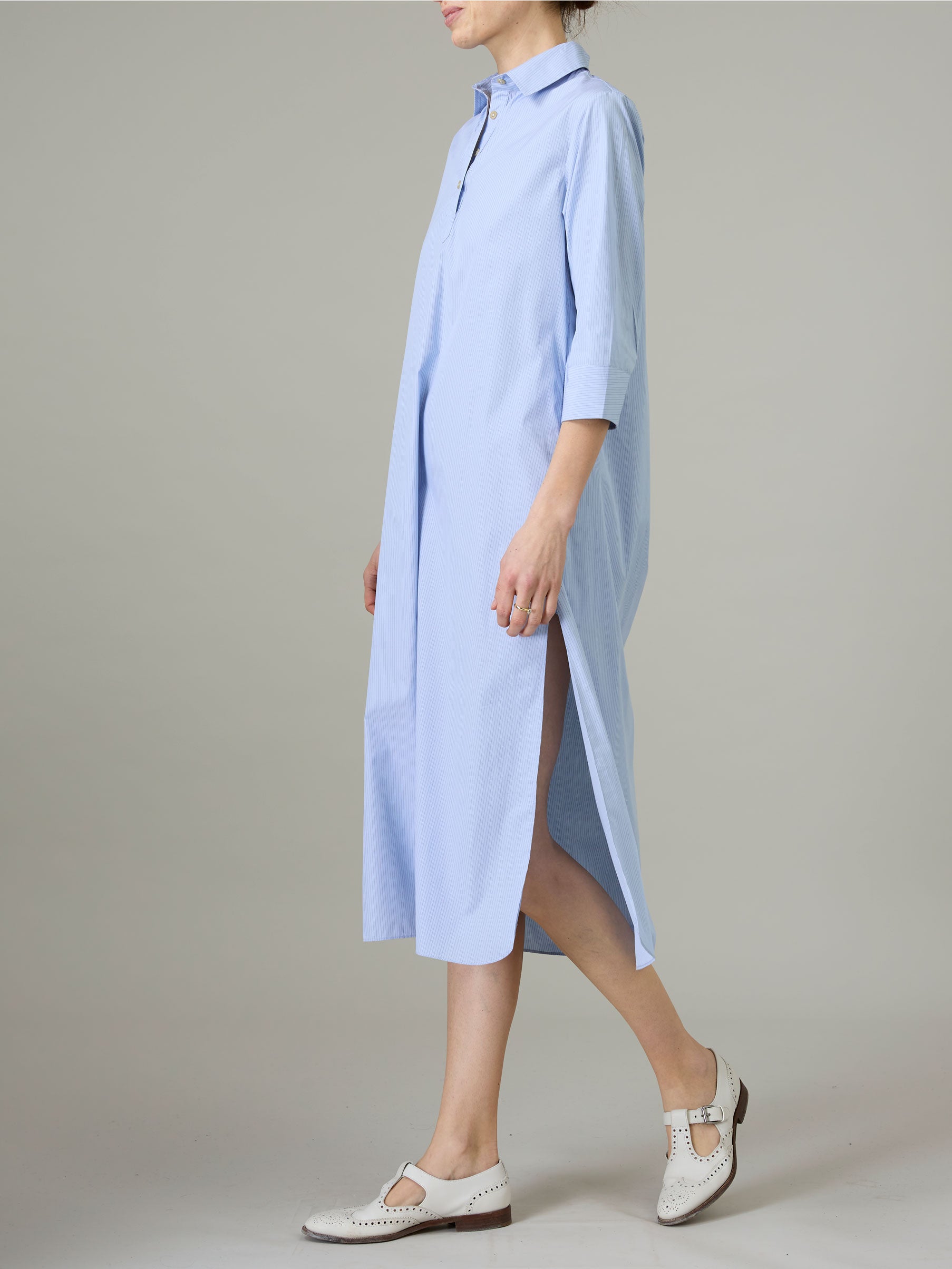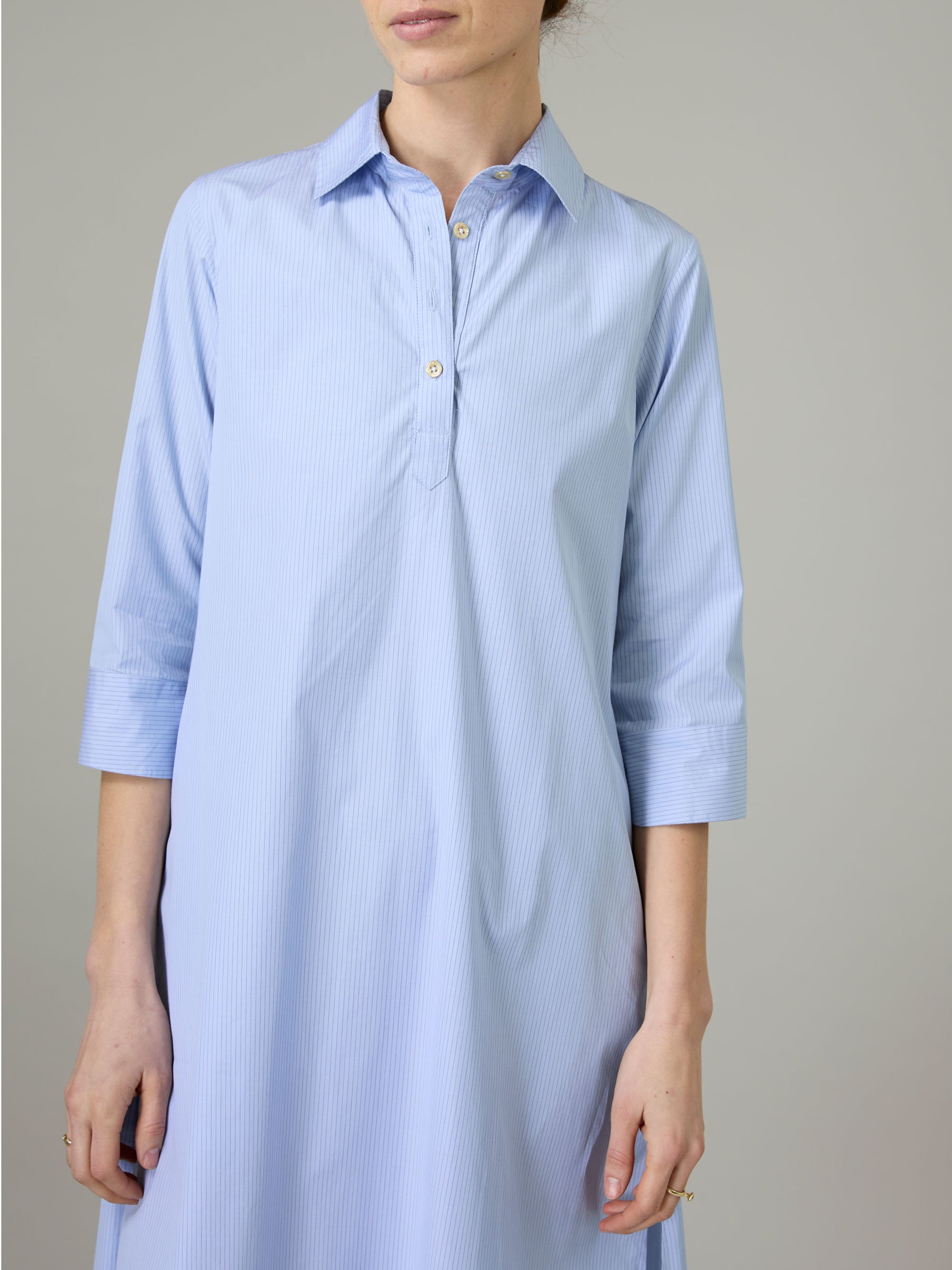 Crafted in the finest gentleman’s quality of cotton pinstripe poplin , its Office Blue hue will be the perfect pick for your summer days.