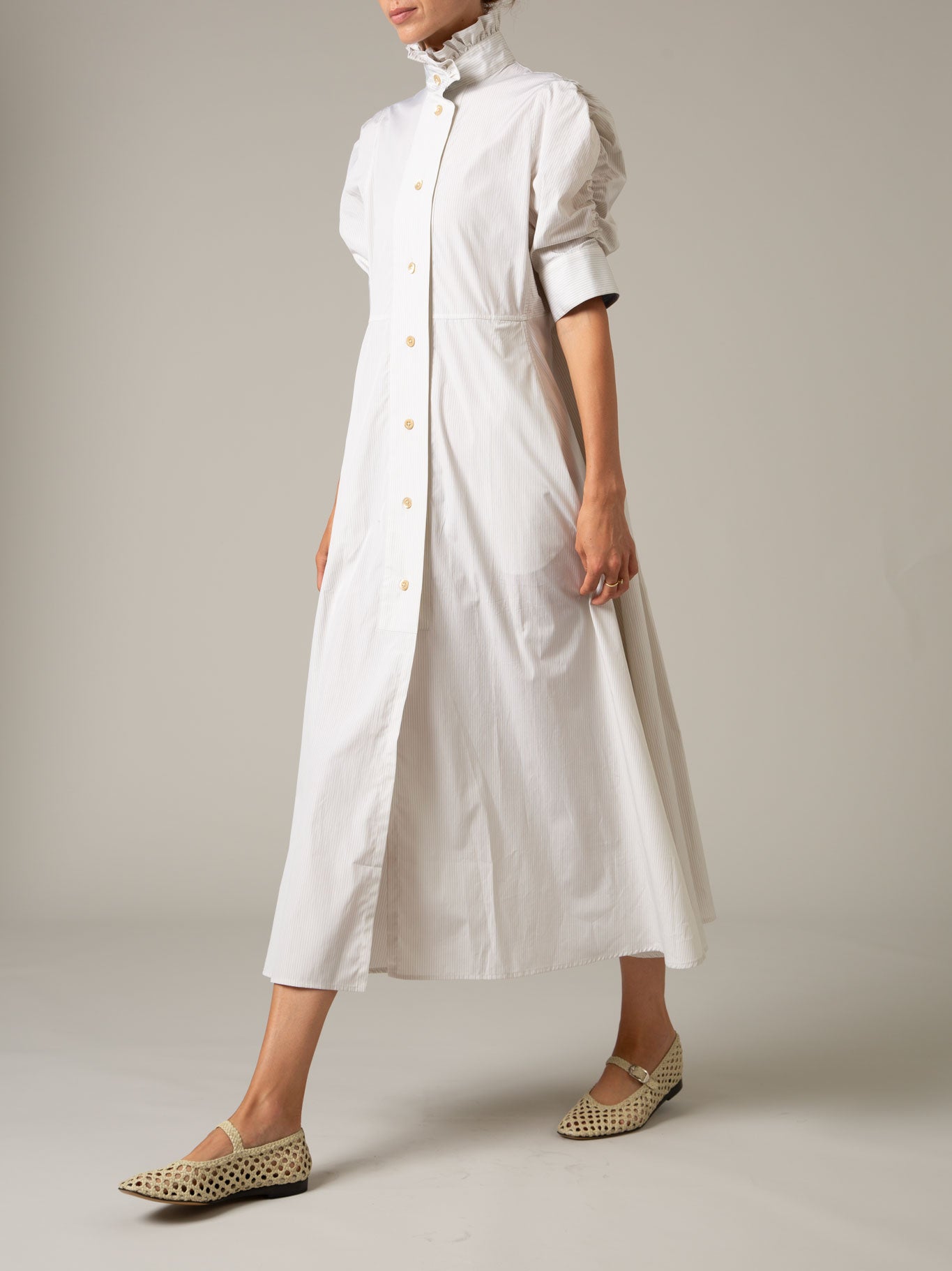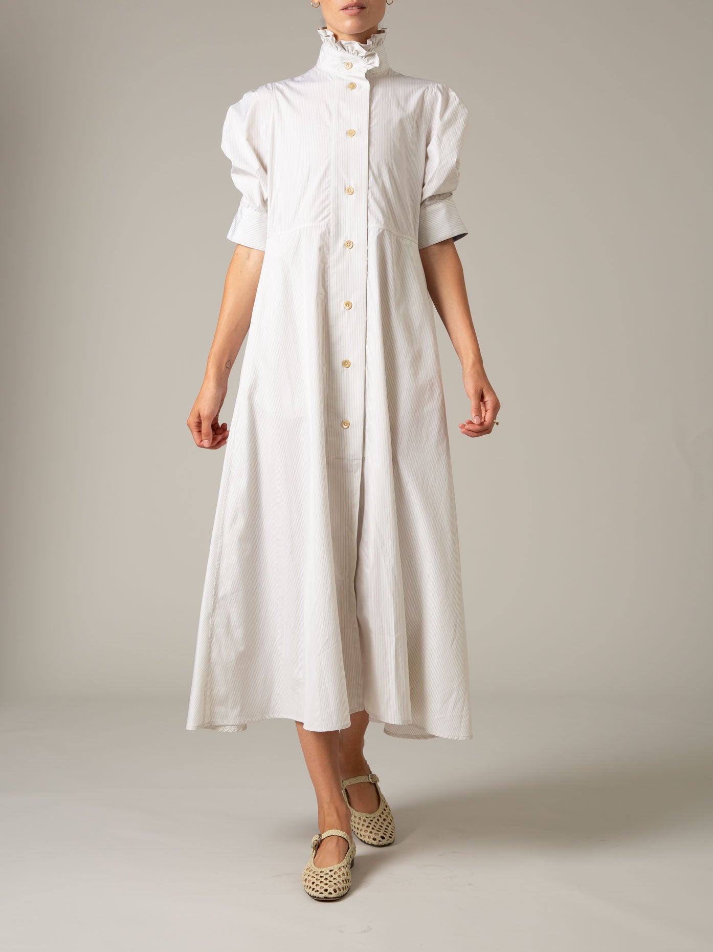 With its frilled collar and Gigot sleeves, our best-selling Venetia dress is a wink to the Edwardian era.