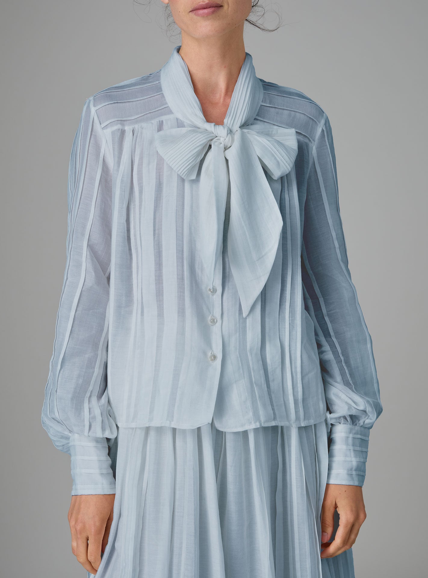The ALBA is a Glamorous “Ascot Blouse”, crafted here in a hand blockprinted cotton voile to preserve its lightness.