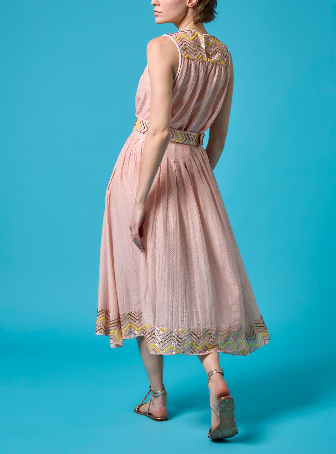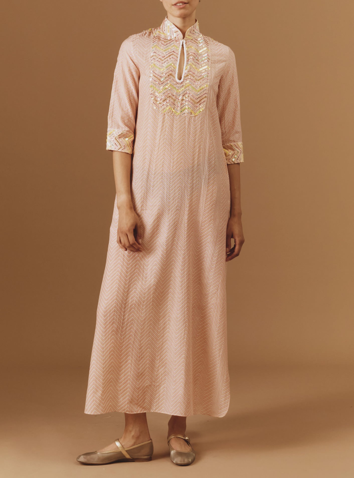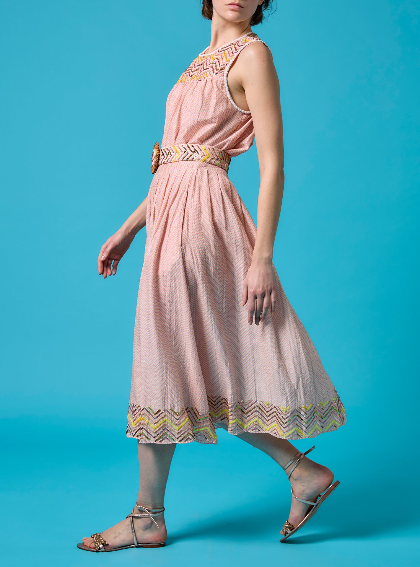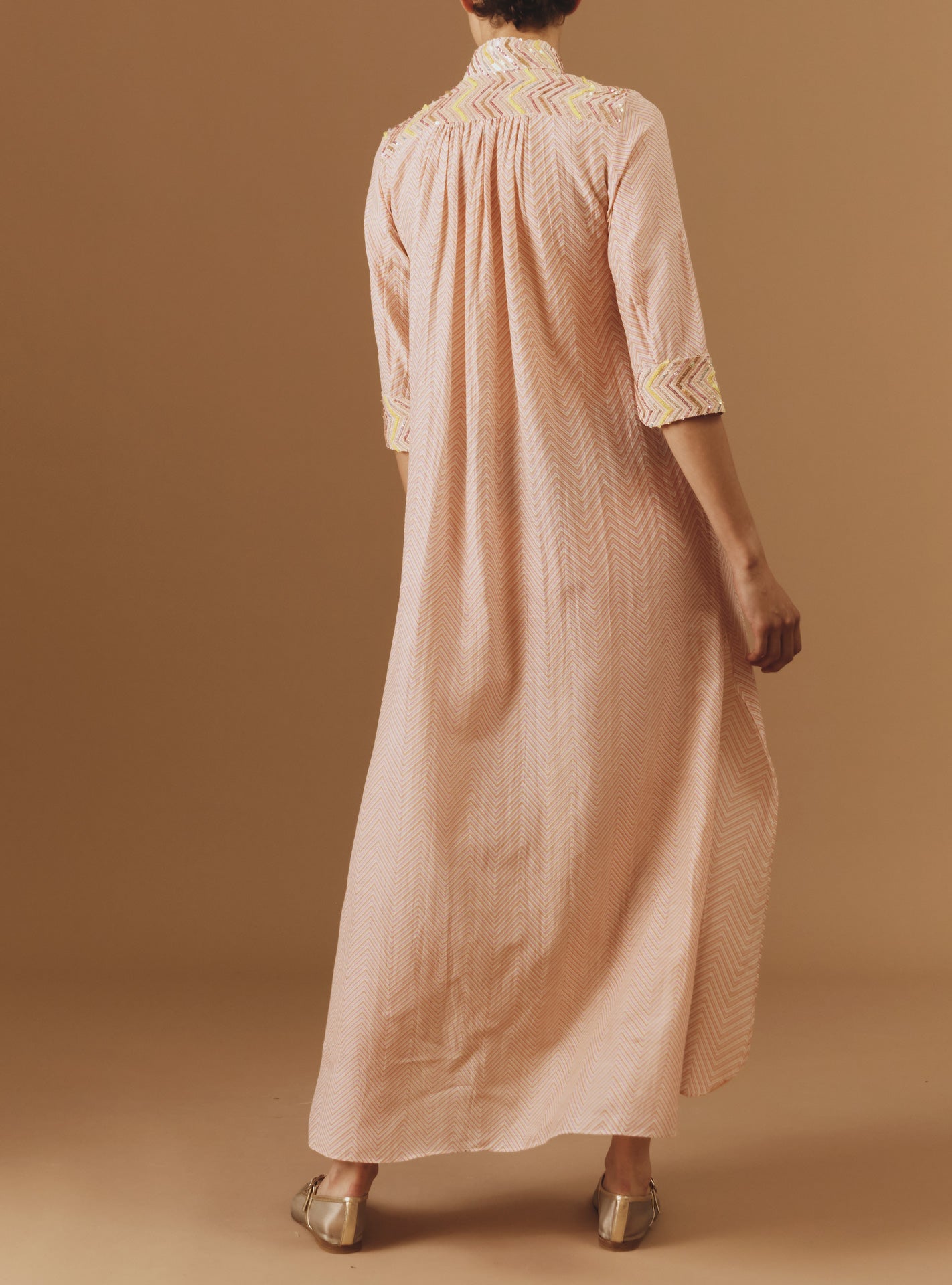This kind of mens shirt revisited in a new embroidered version for summer 2023: yoke and cuffs are all hand-embroidered with sequins on cotton and silk, with a screen-printed zigzag pattern, evoking the cultures of the Silk Road.