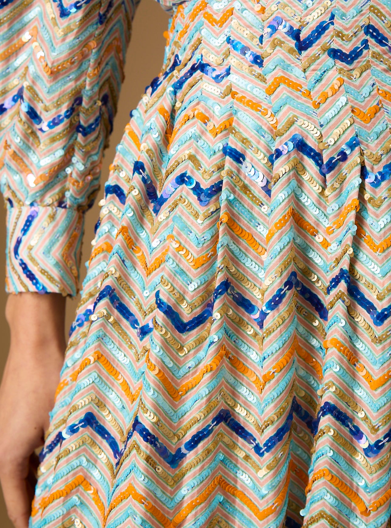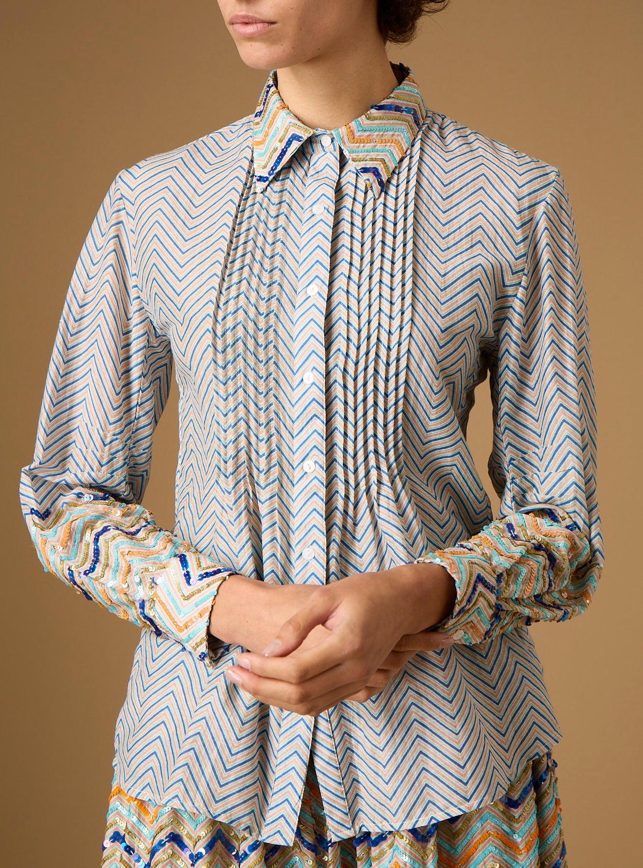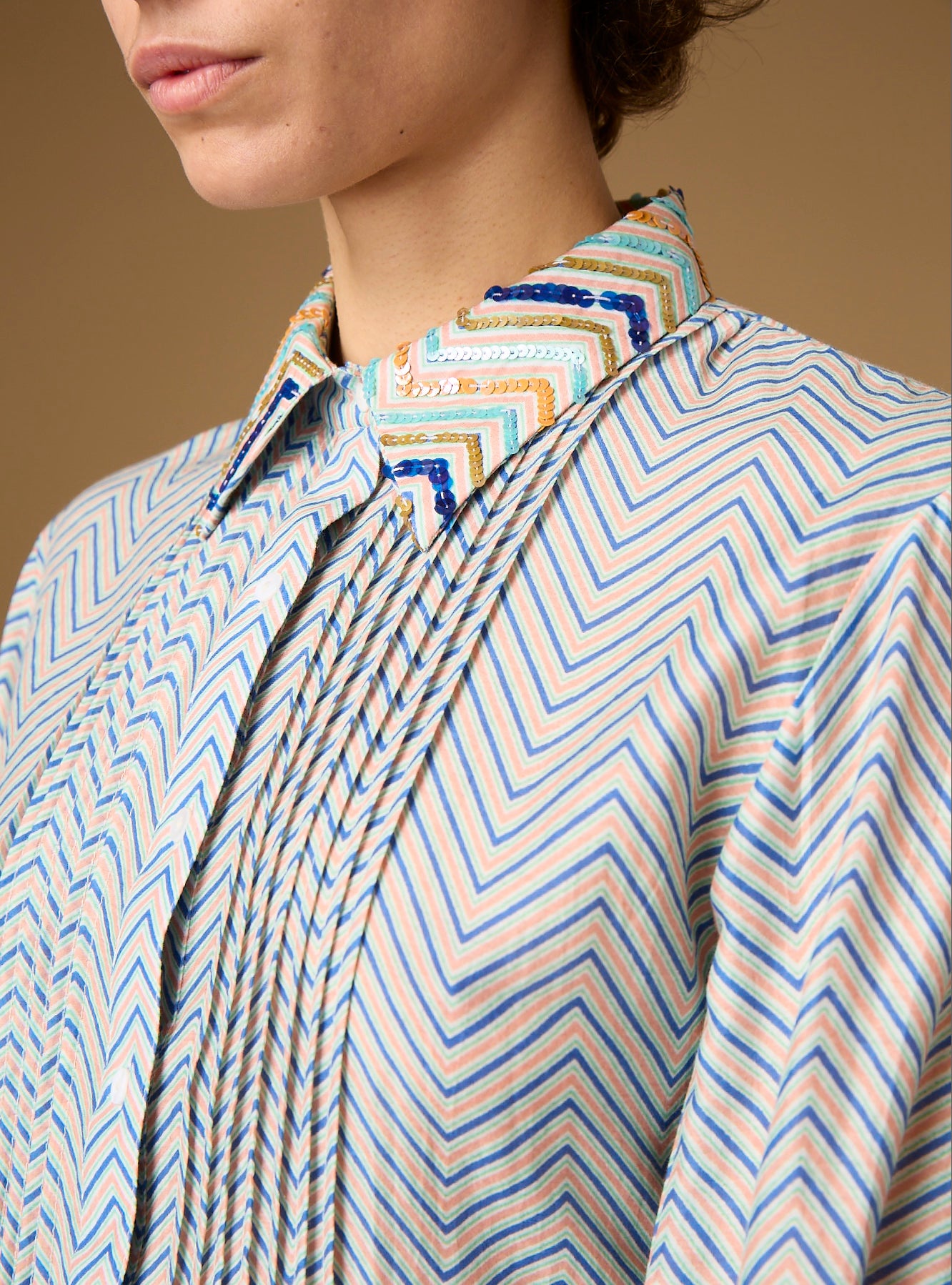 Winston Shirt - Glitter Zig-zag Embroidery - Blue/Coral