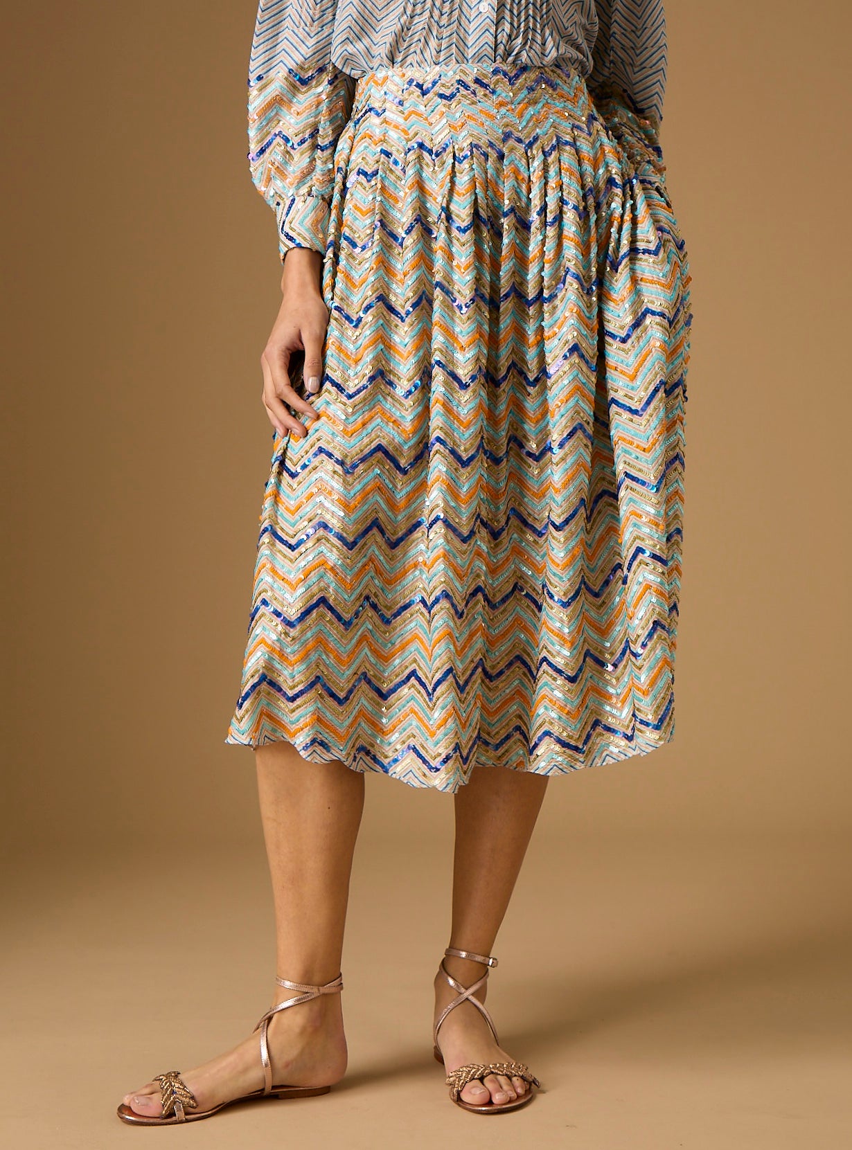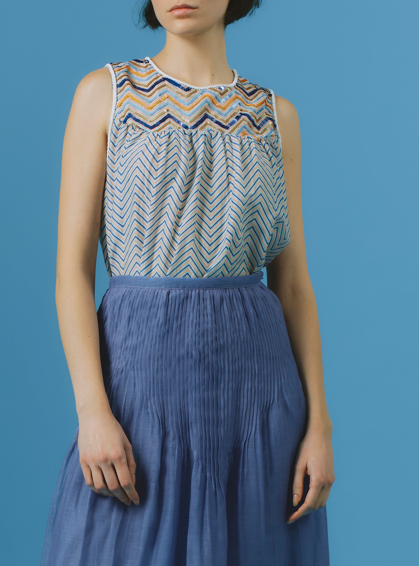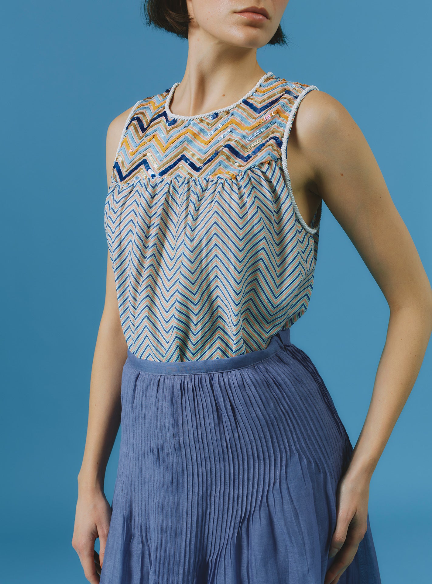 Winston Shirt - Glitter Zig-zag Embroidery - Blue/Coral