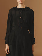 The ZULAIKA delicate blouse is crafted in a soft cotton silk fabric. The crossed “religious pleats” have been exclusively engineered for the brand. Ruffled Peter Pan collar & cuffs make it unique.