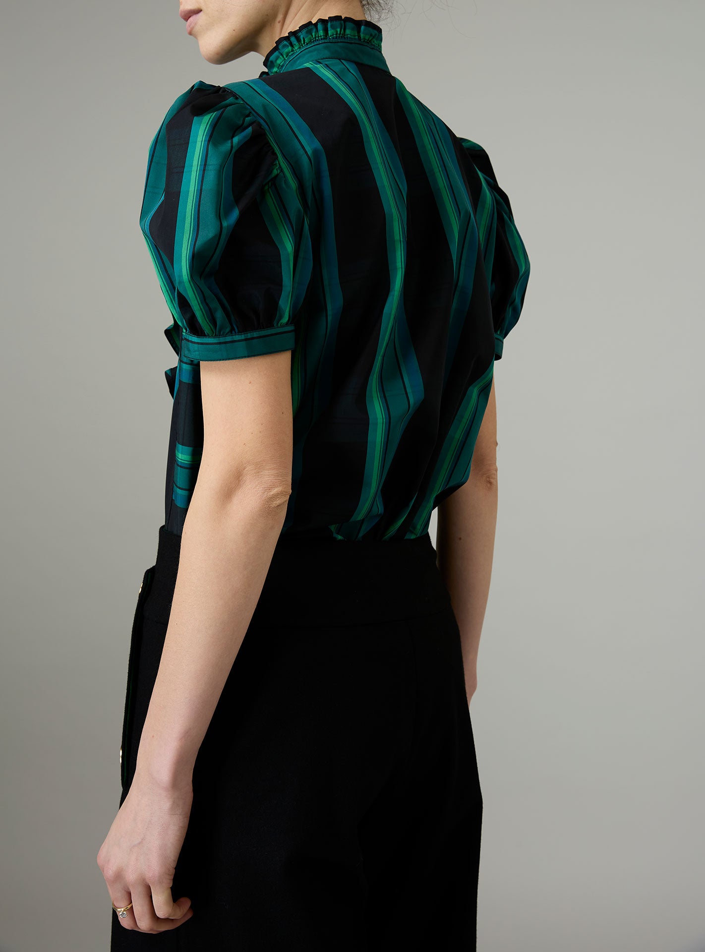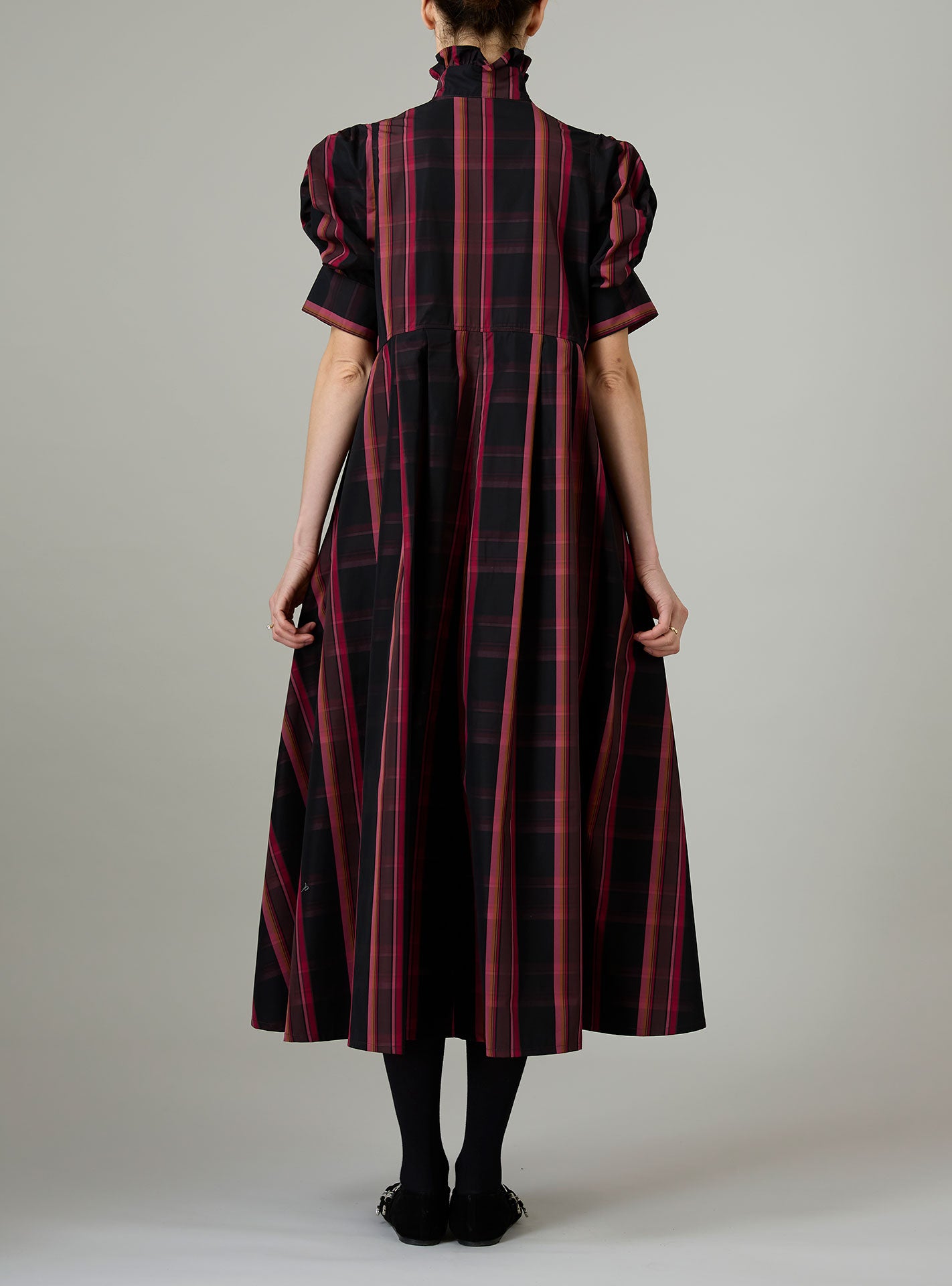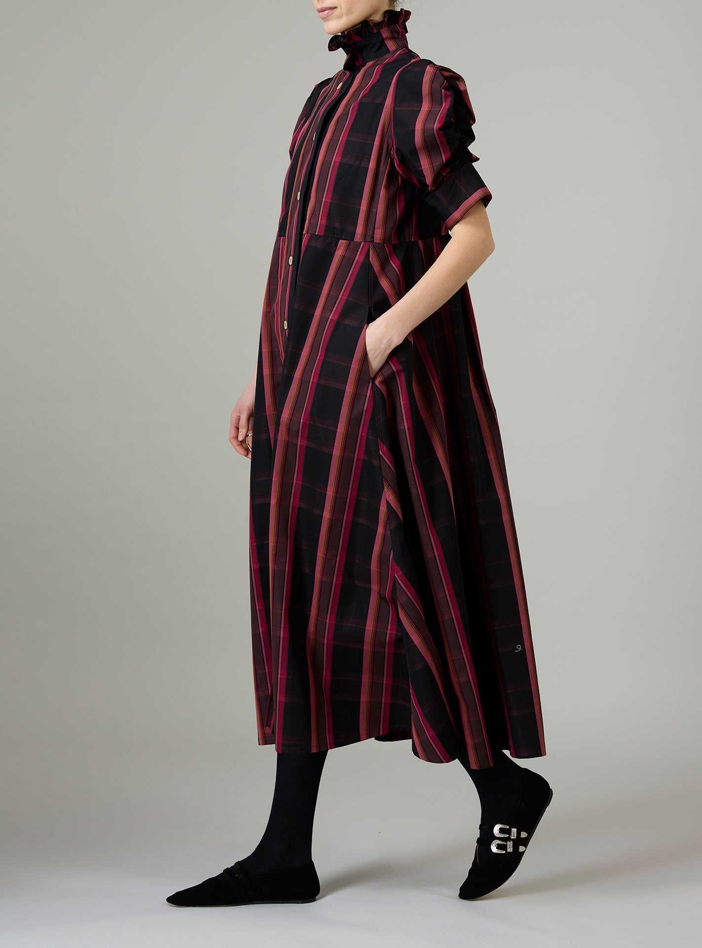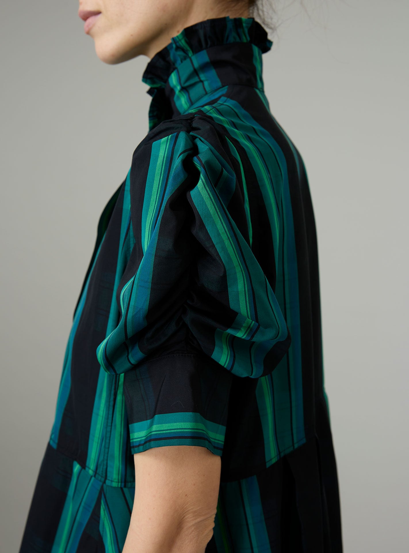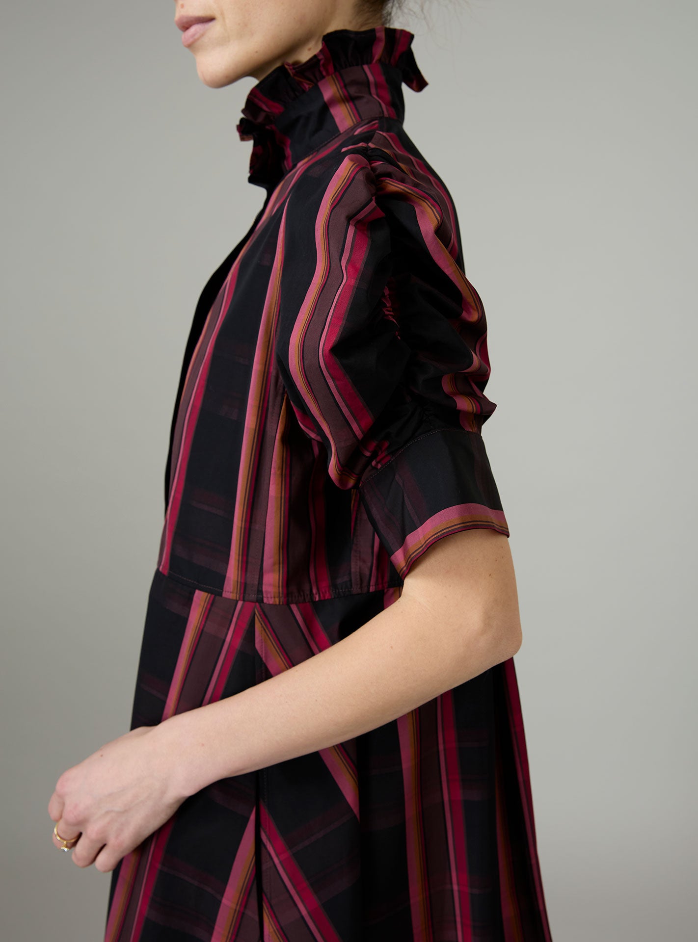 With its charming, puffed sleeves and its ruffled jabot, the Bibiana blouse is crafted in a pristine crispy tartan poplin.