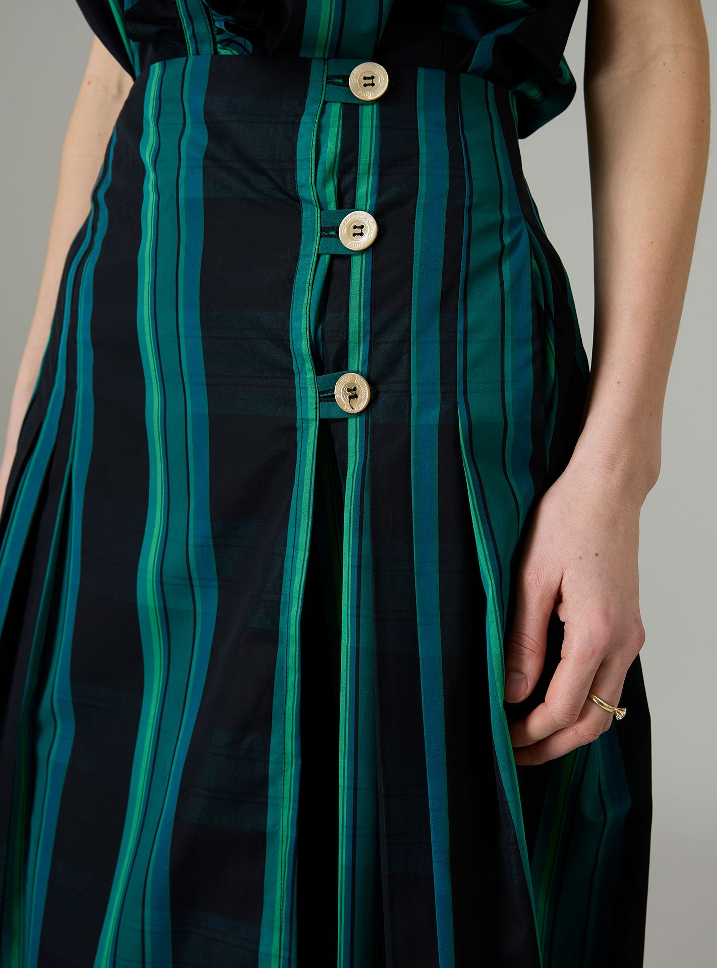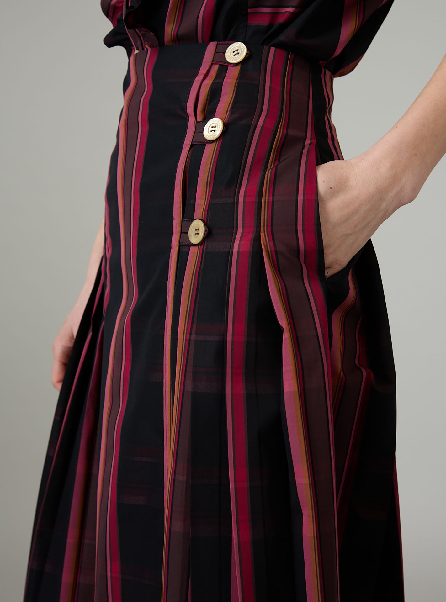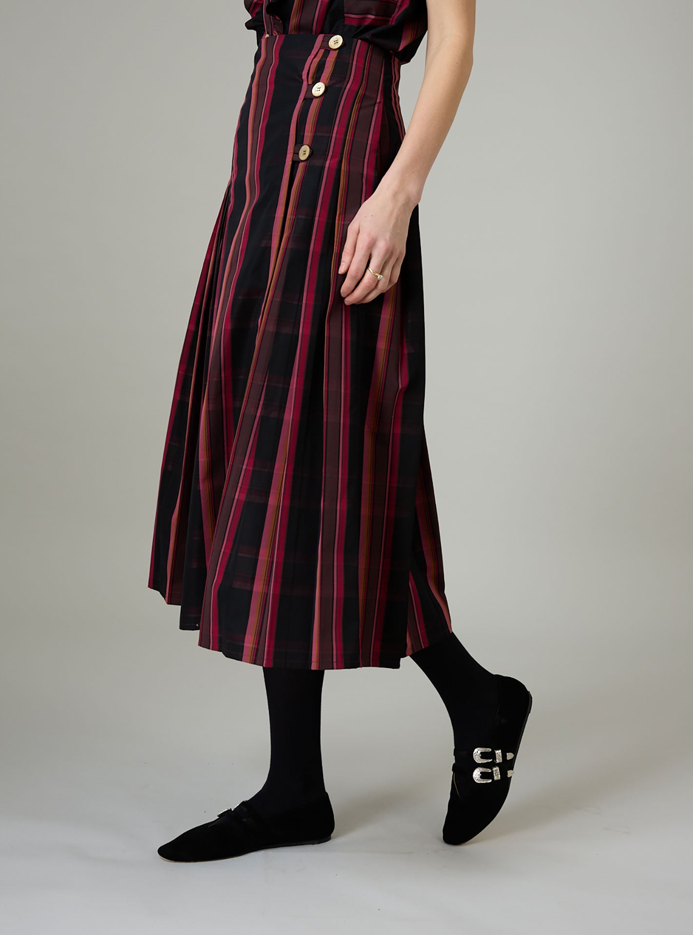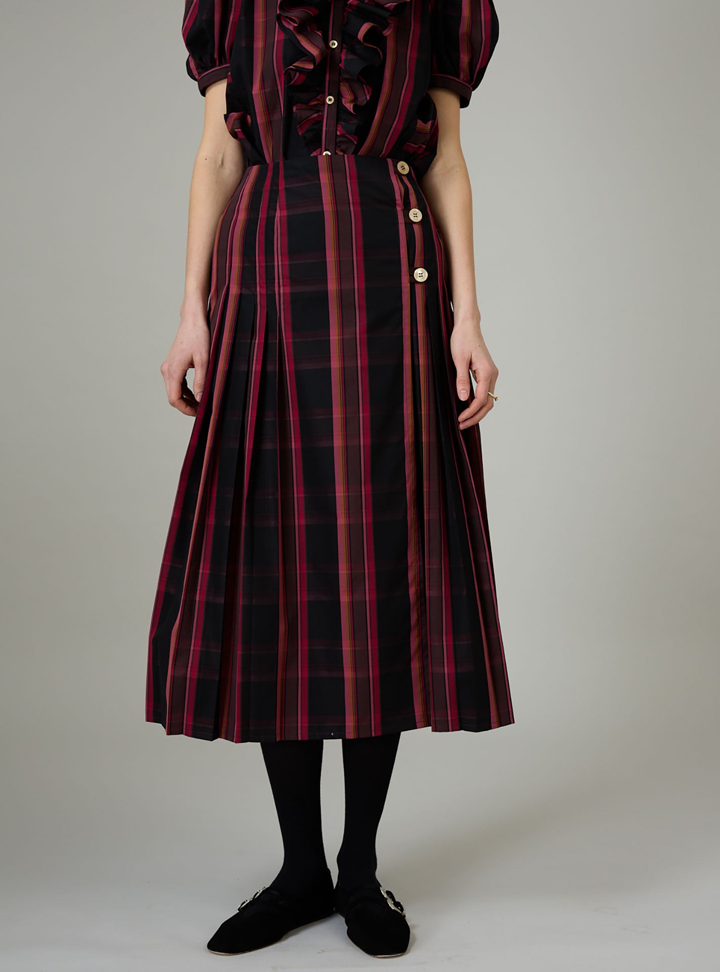 We love it paired with our Brenda kilt skirt as an ensemble.