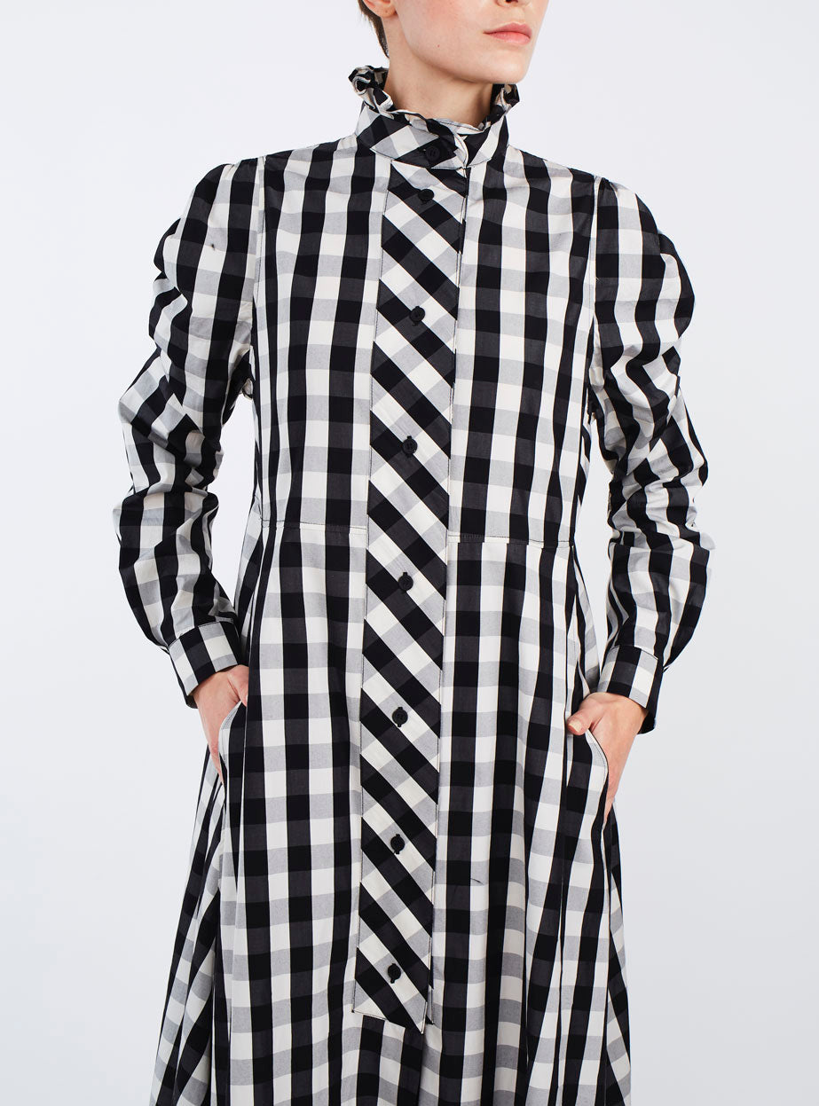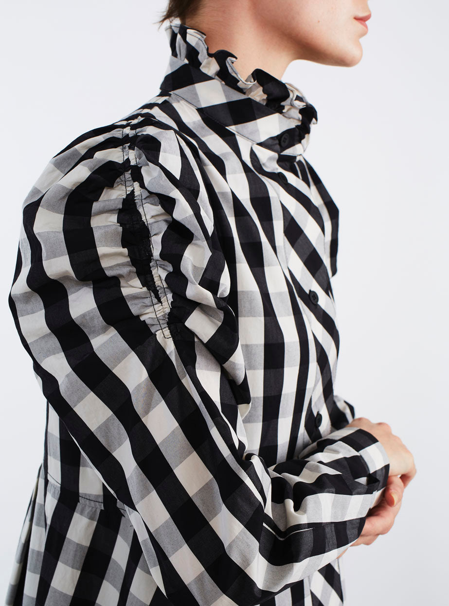 This playful mini shirt dress reedition LIZBETH is crafted in a crispy gingham poplin made in Italy.