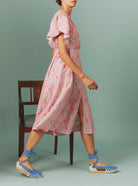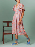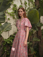 Marieke Midi Dress - Parrot Print - Blue Grey / Watermelon