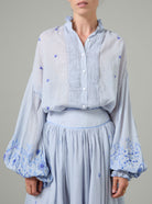 Slava Blouse - Wild Flower Embroidery - Blue