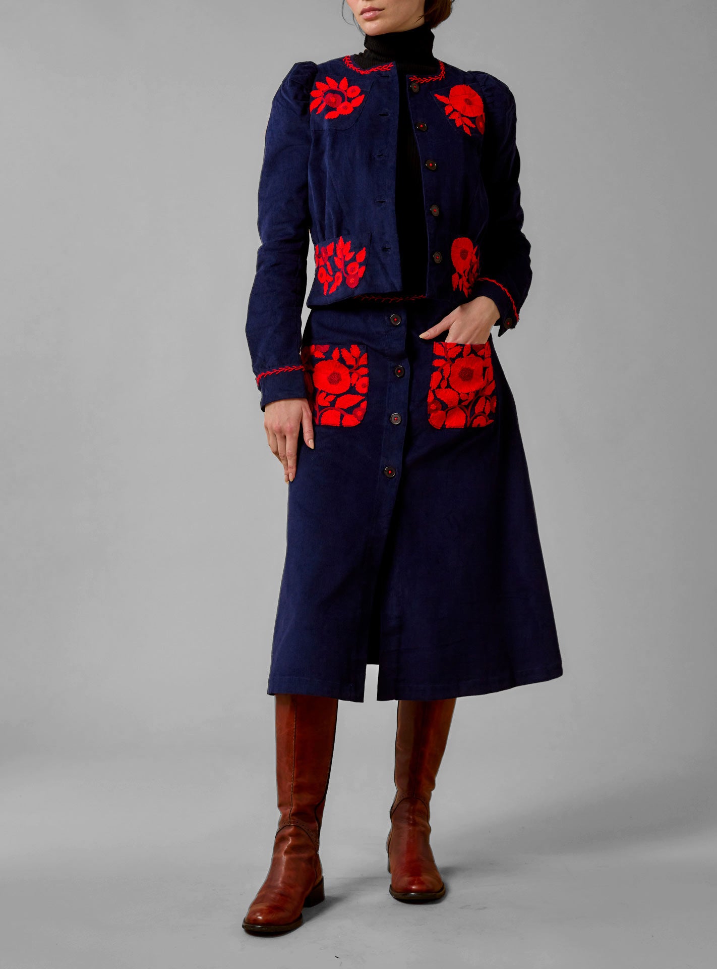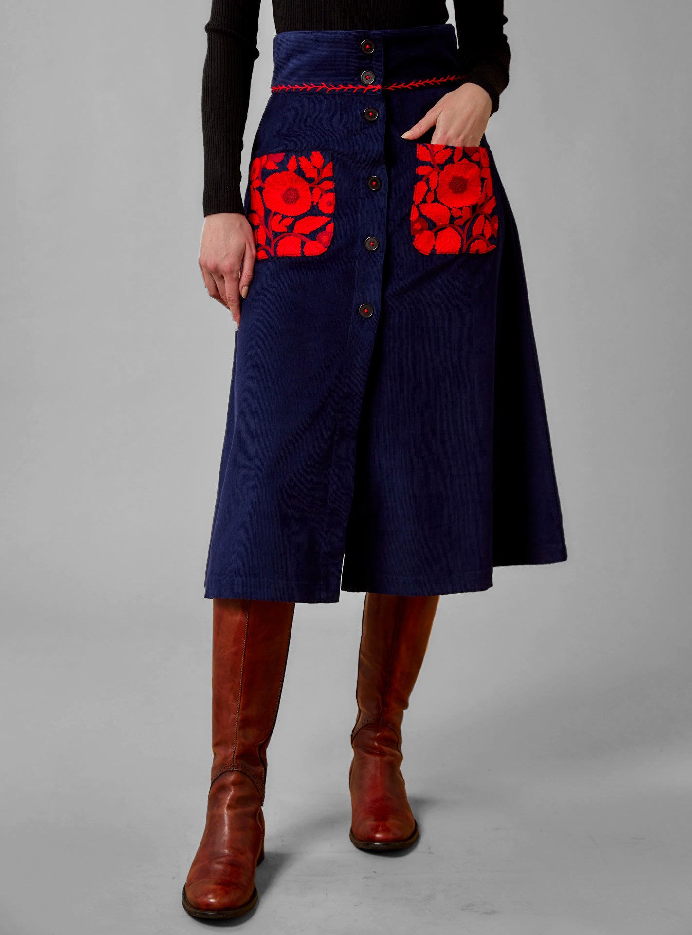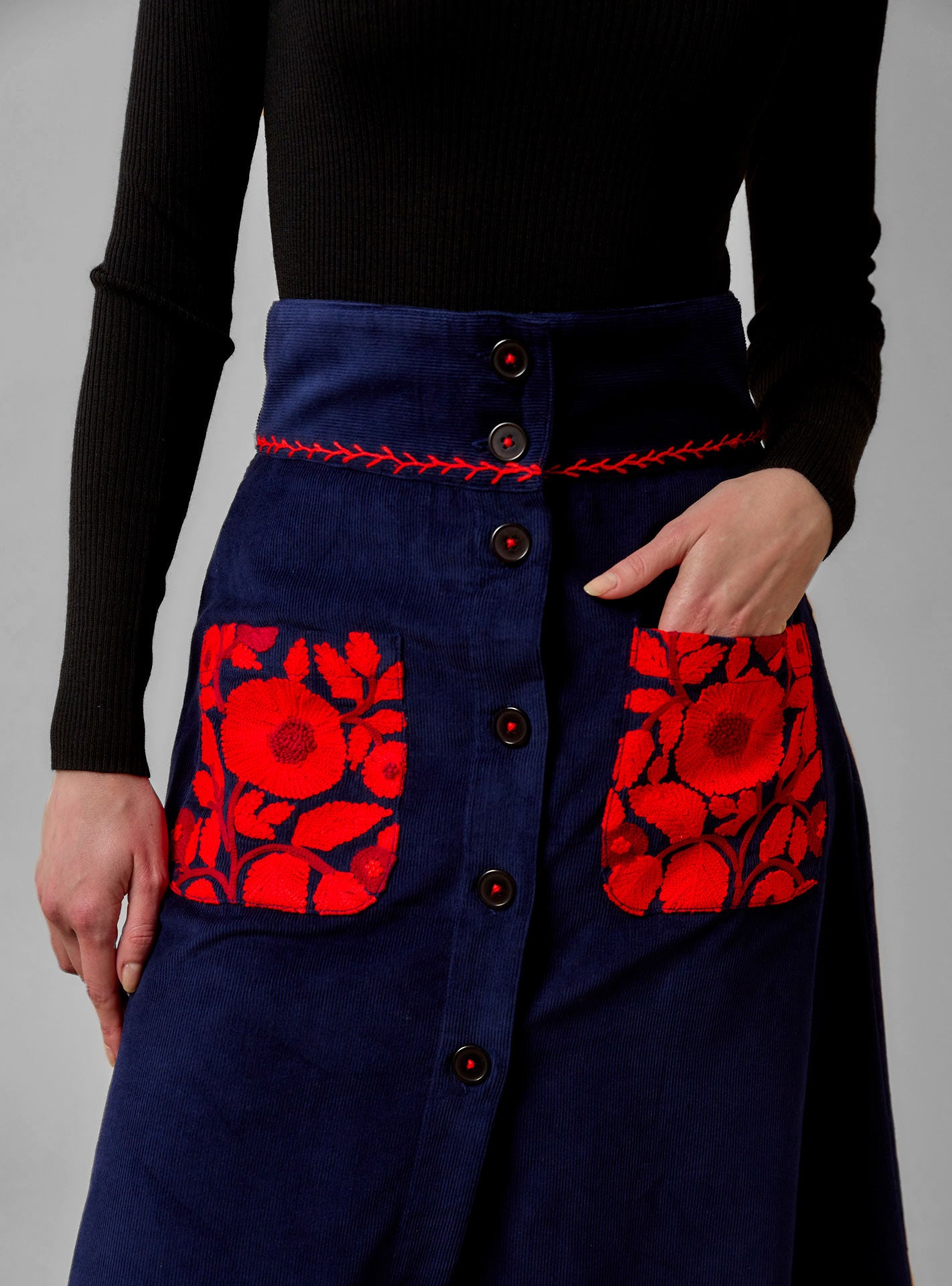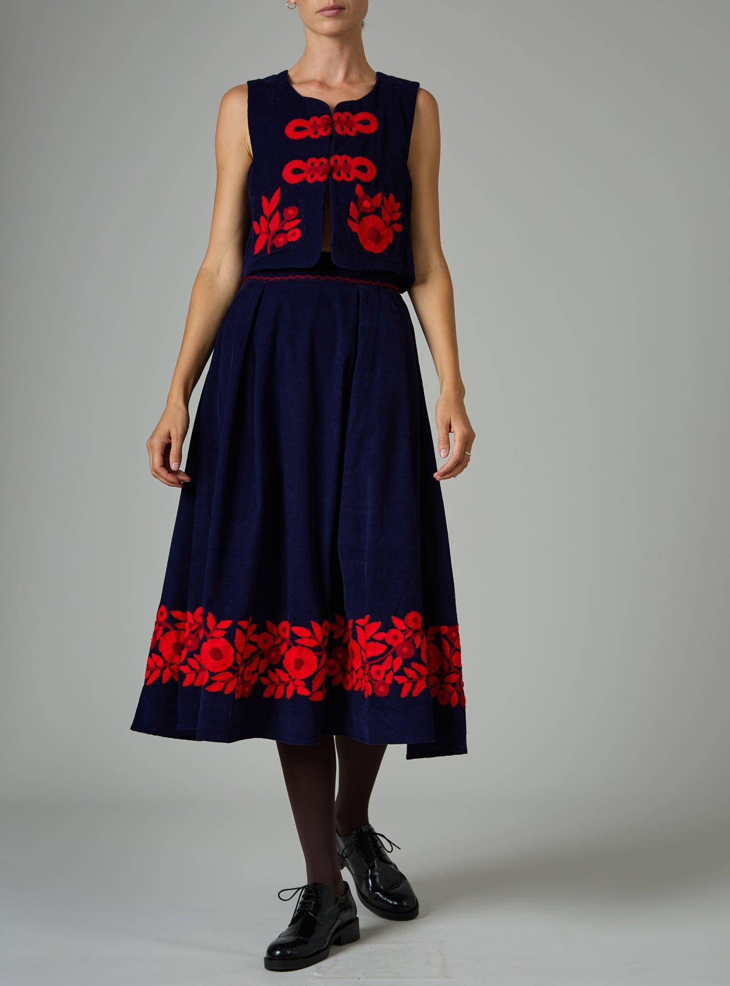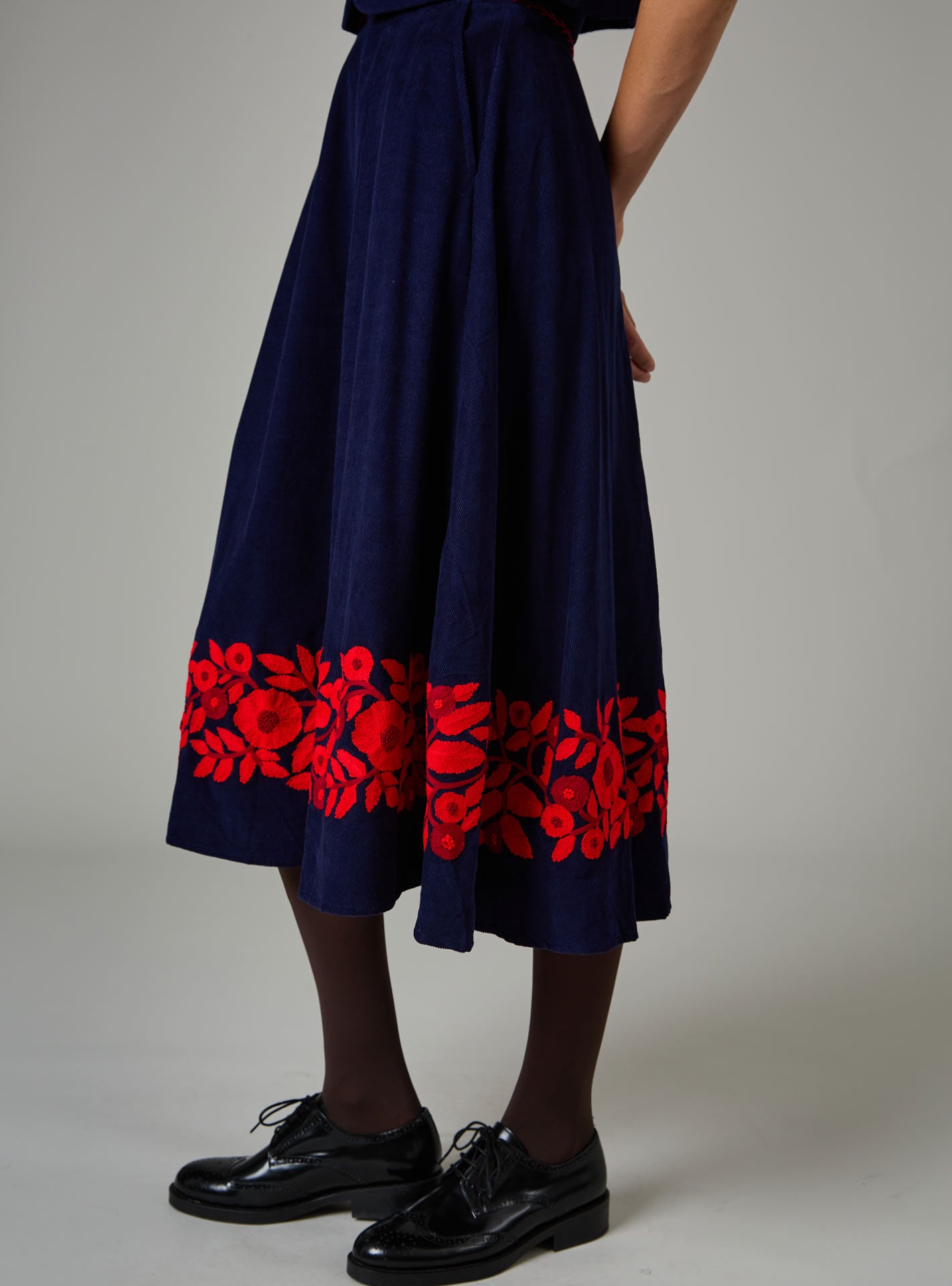 Yardley Skirt - Balkanic Embroidery - Navy / Red