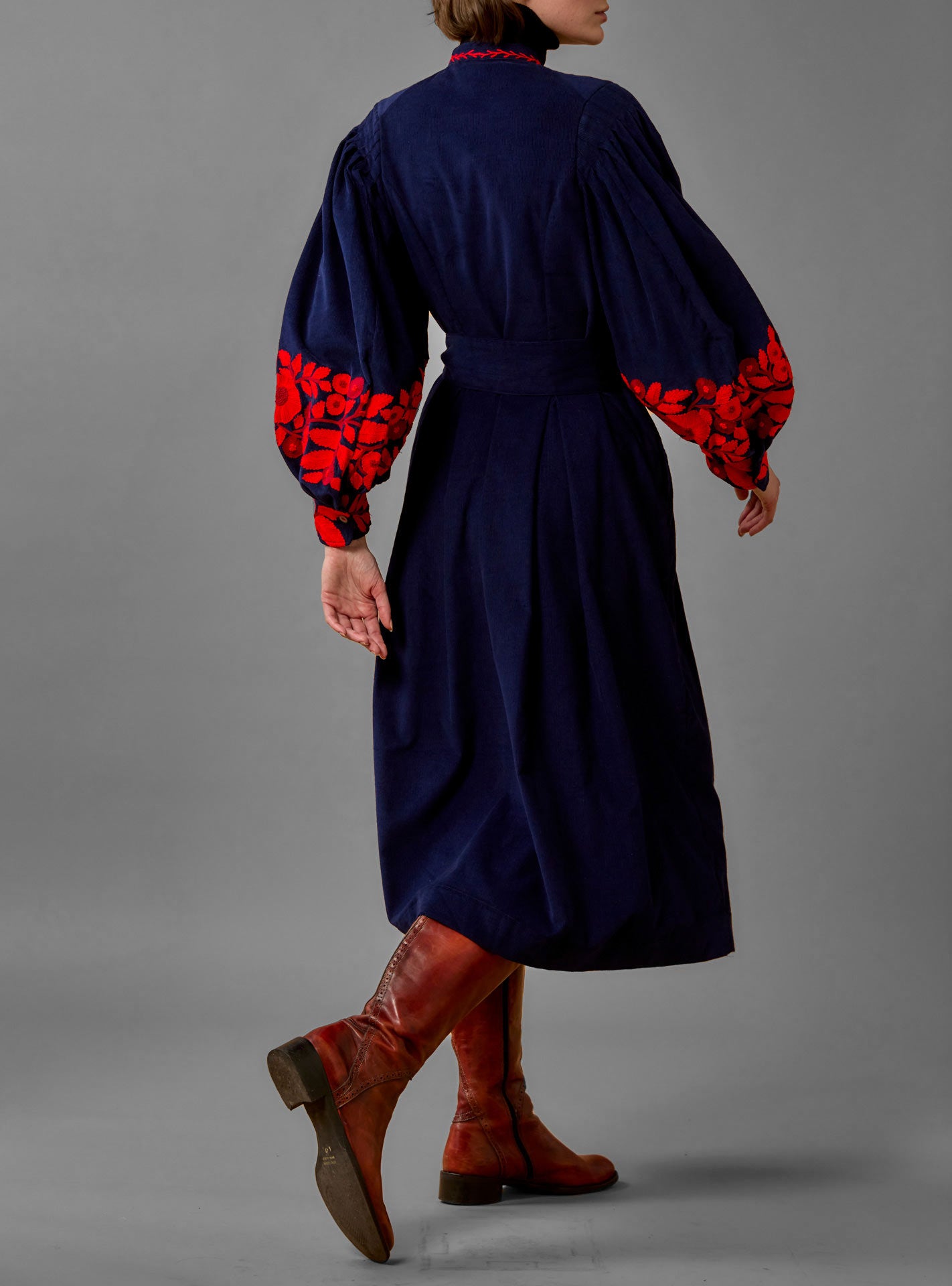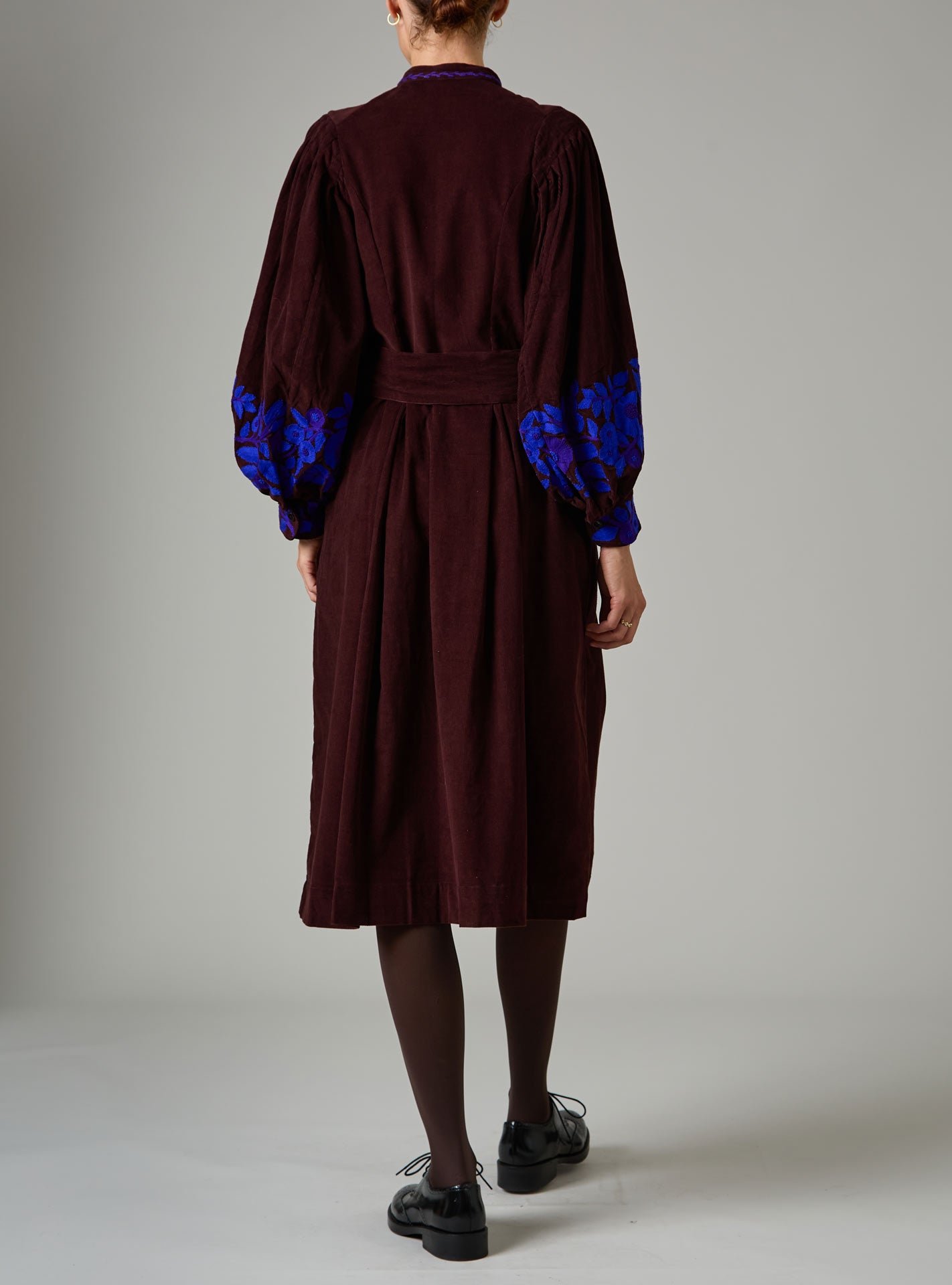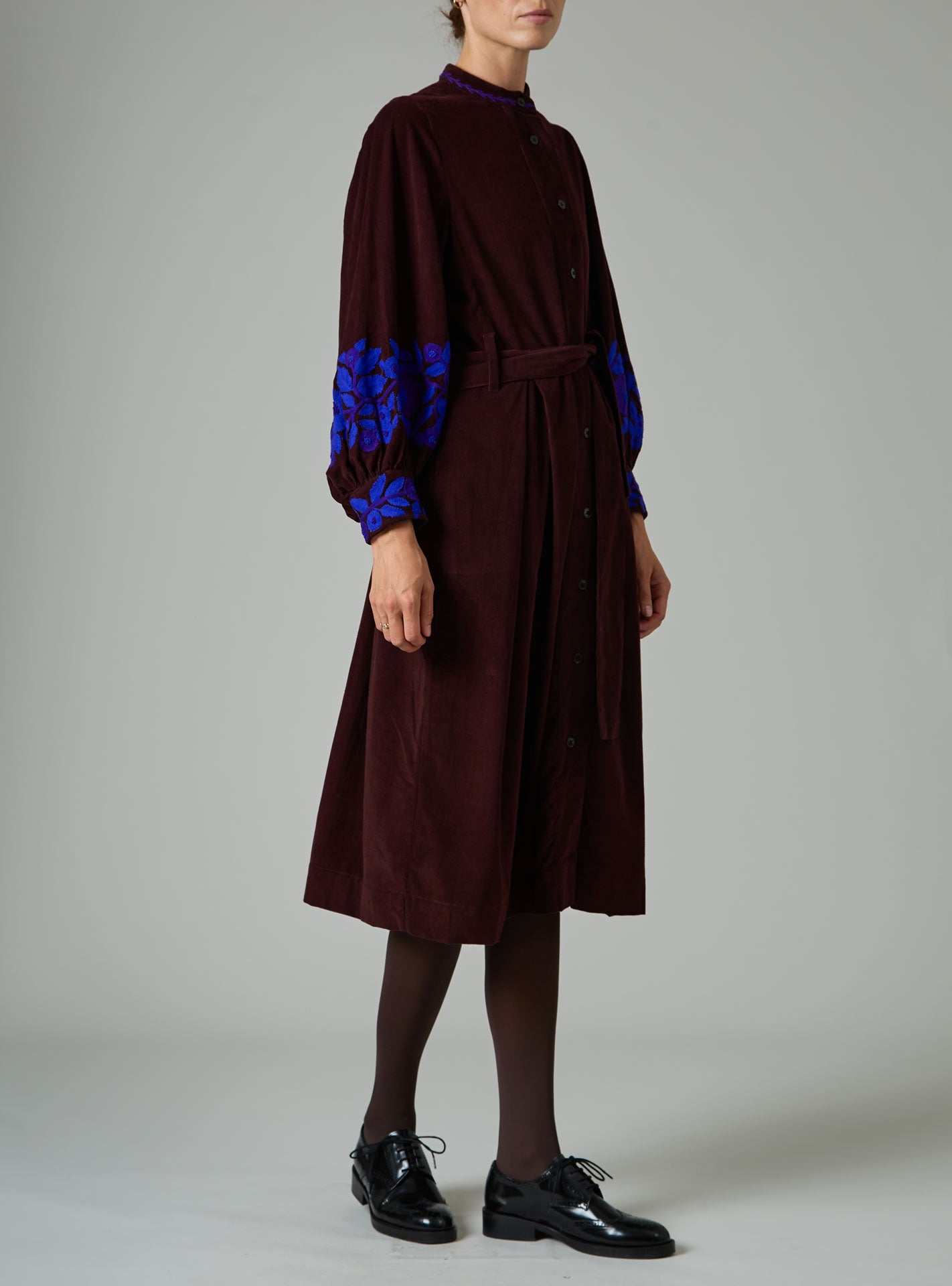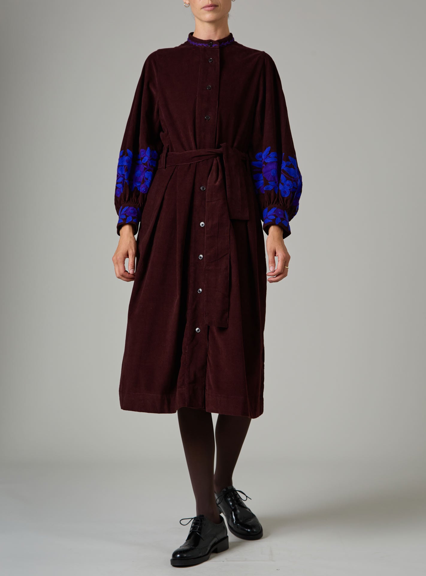 Yvonne midi dress -Balkanic embroidery -Chocolate /cobalt & purple
