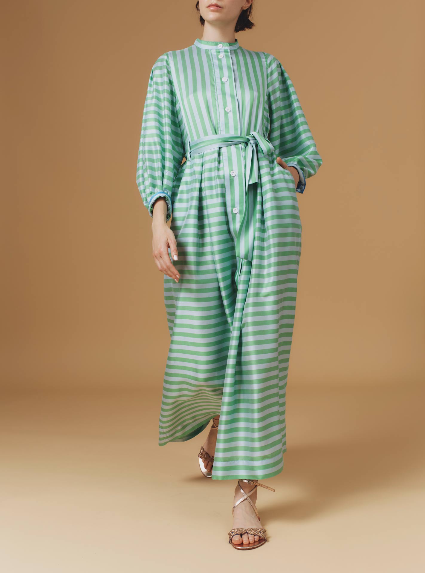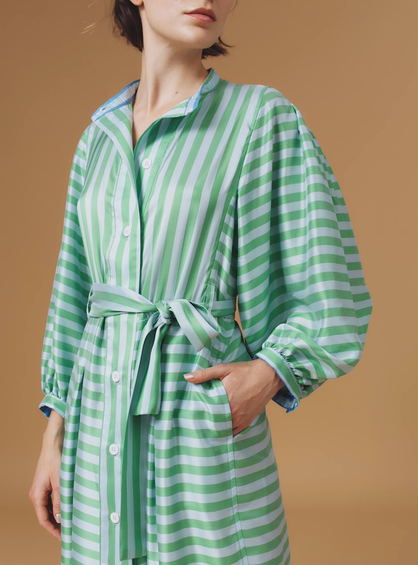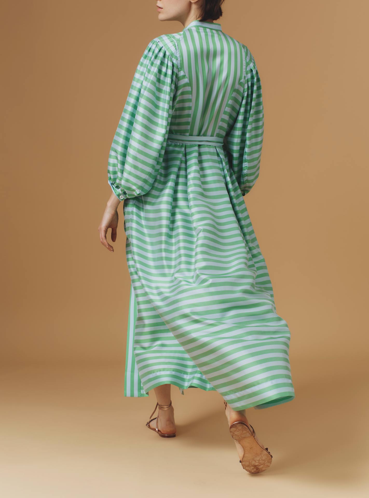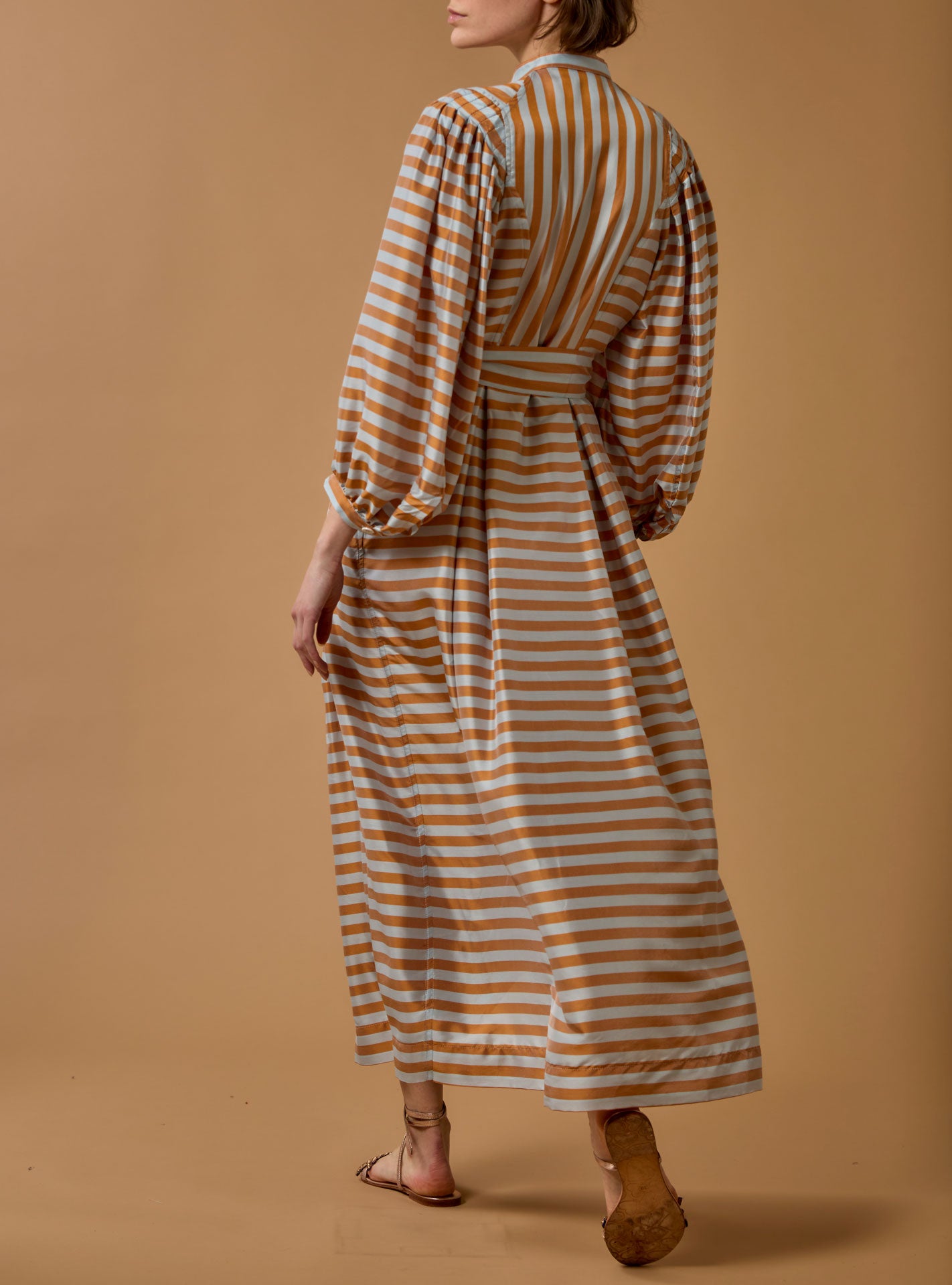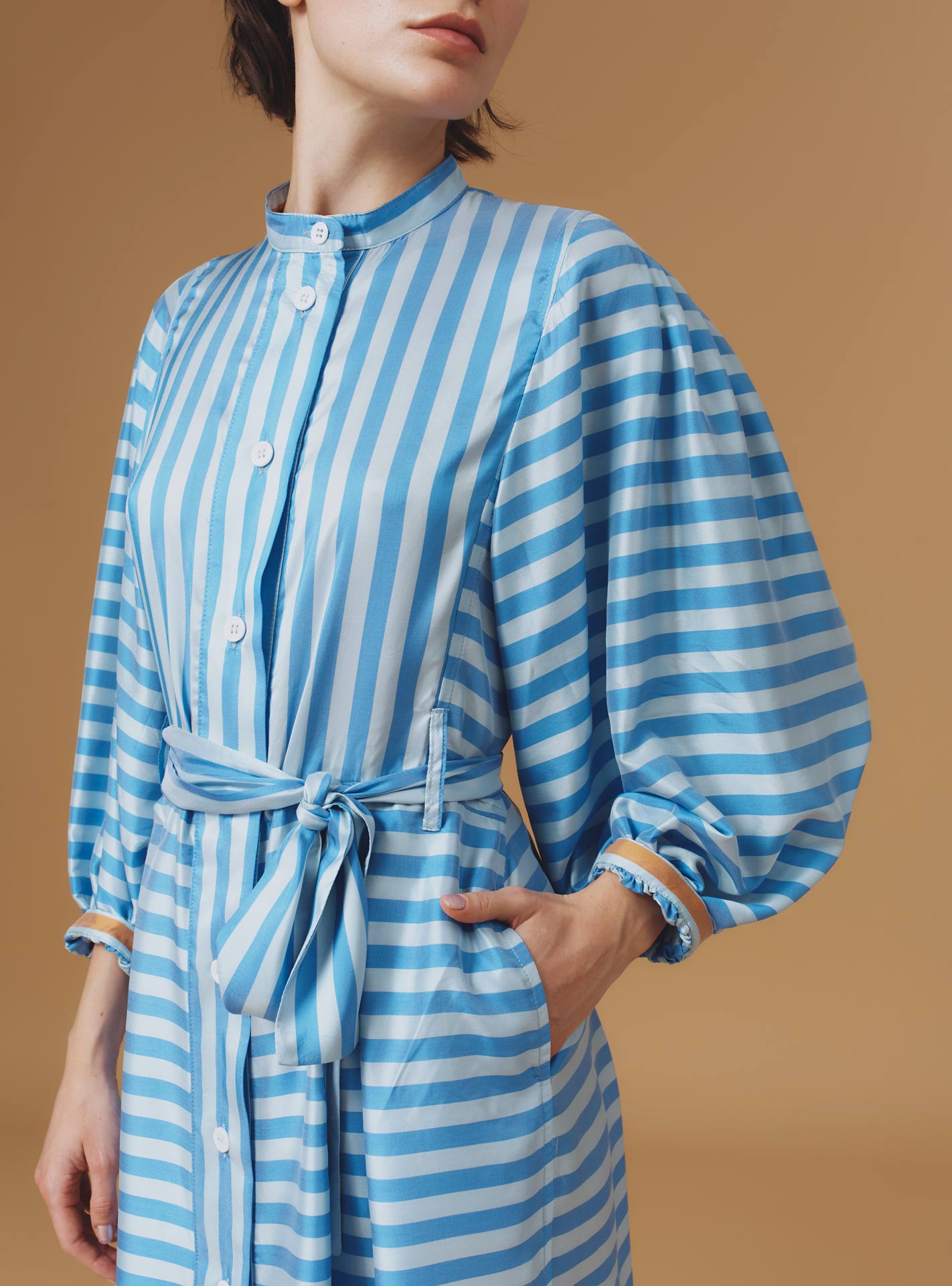 The Yvonne midi coat-dress, seeming so classic at first glance, is twisted with its dramatic sleeves inspired by the Stuart period: this is what makes it unique.