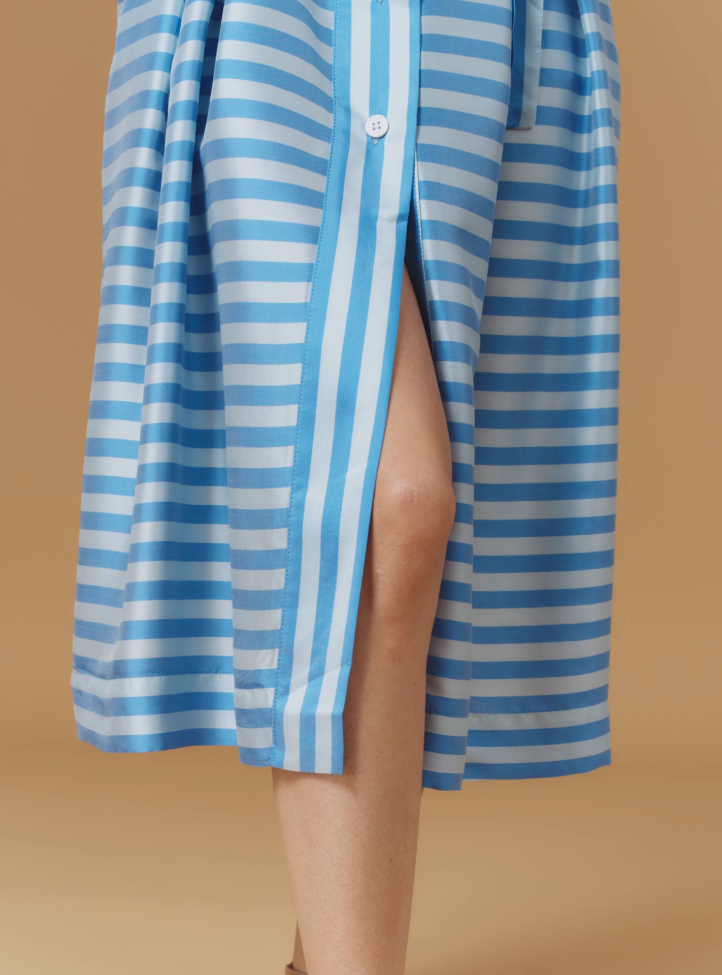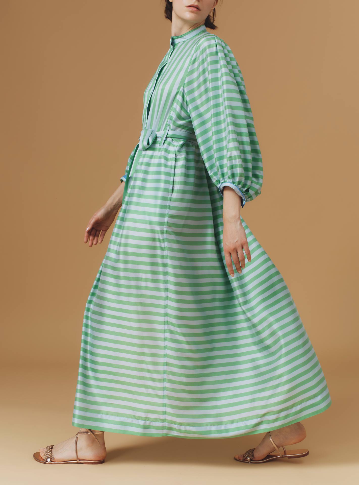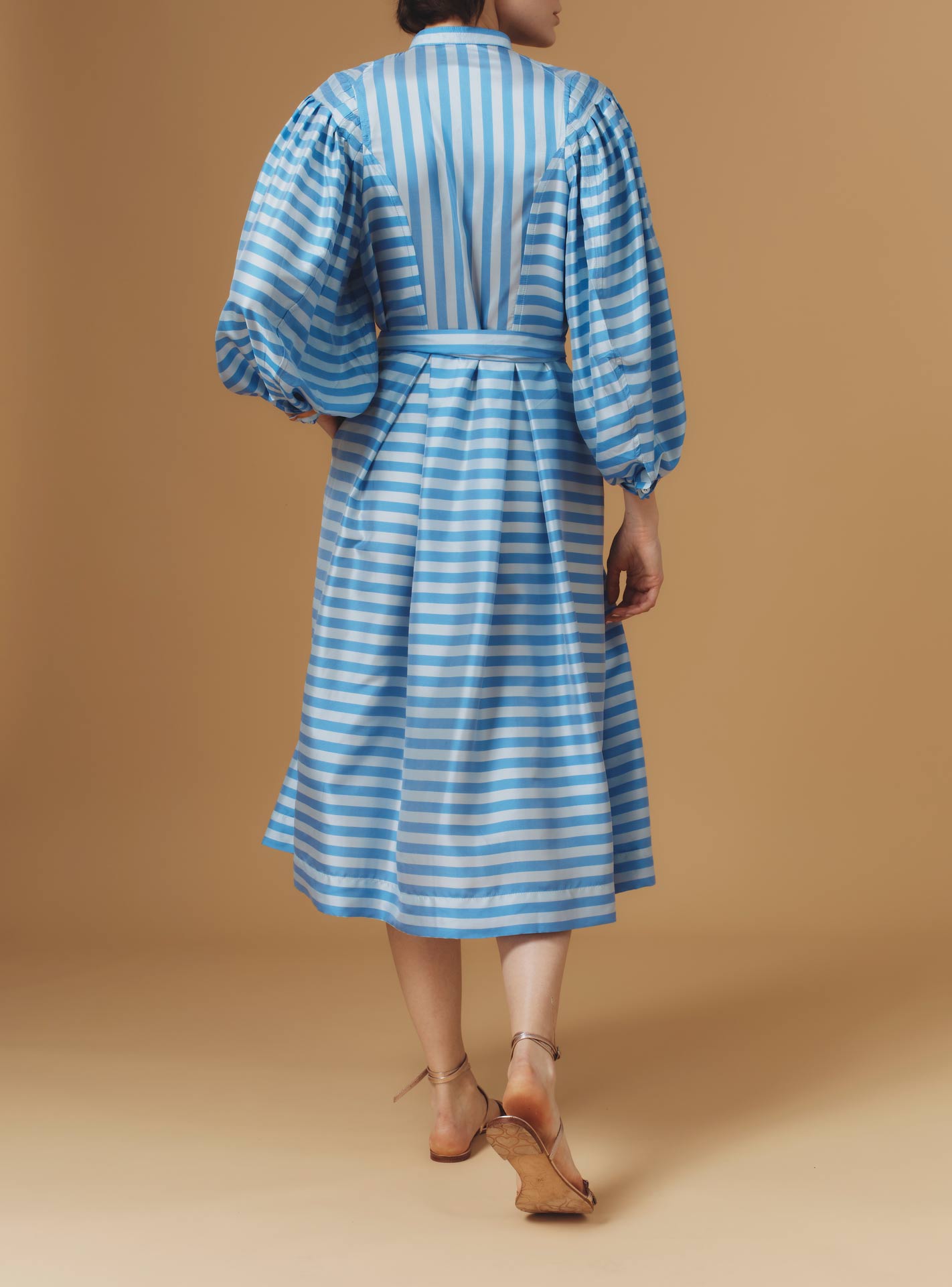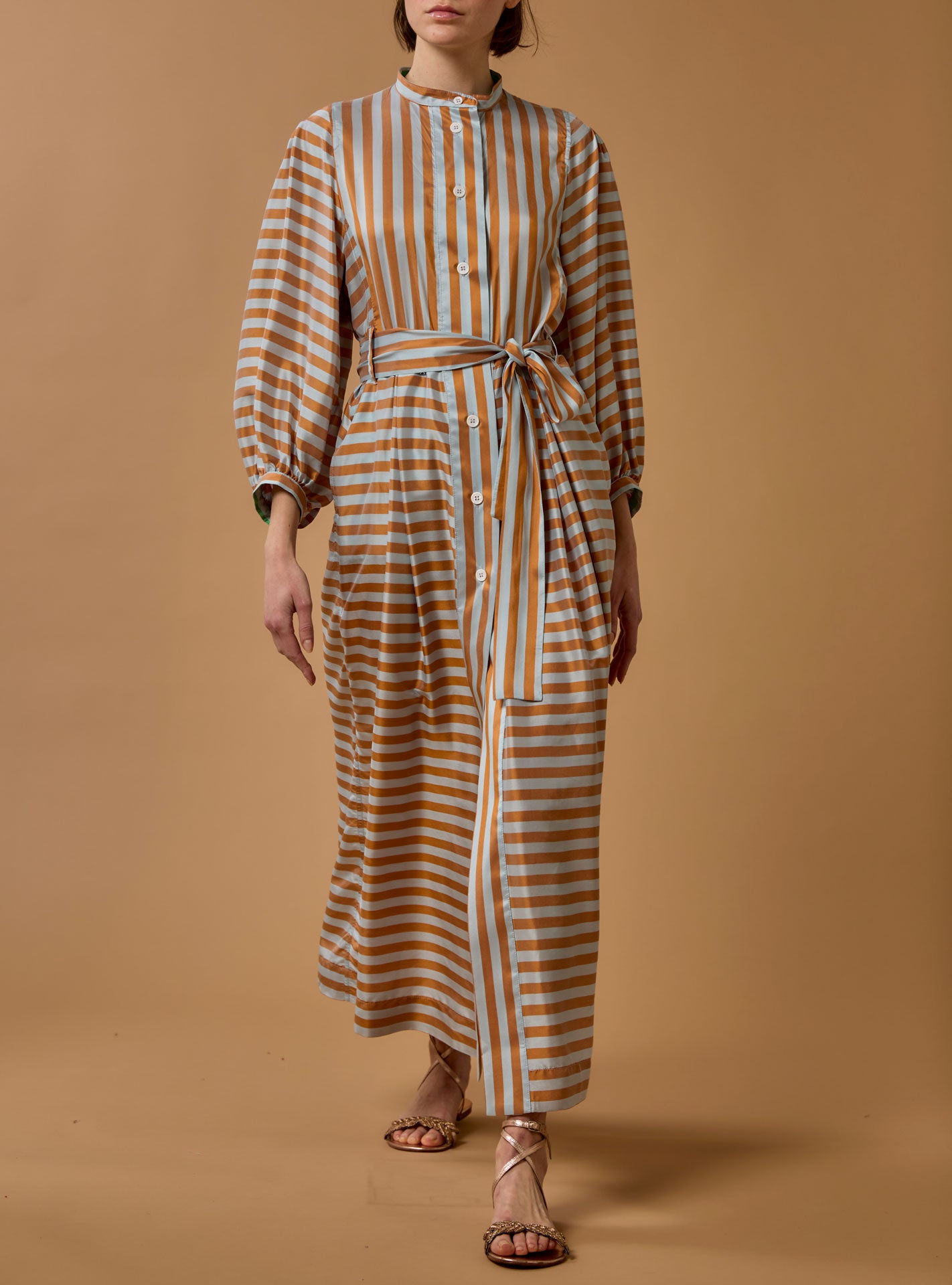 The Yvonne midi coat-dress, seeming so classic at first glance, is twisted with its dramatic sleeves inspired by the Stuart period: this is what makes it unique.