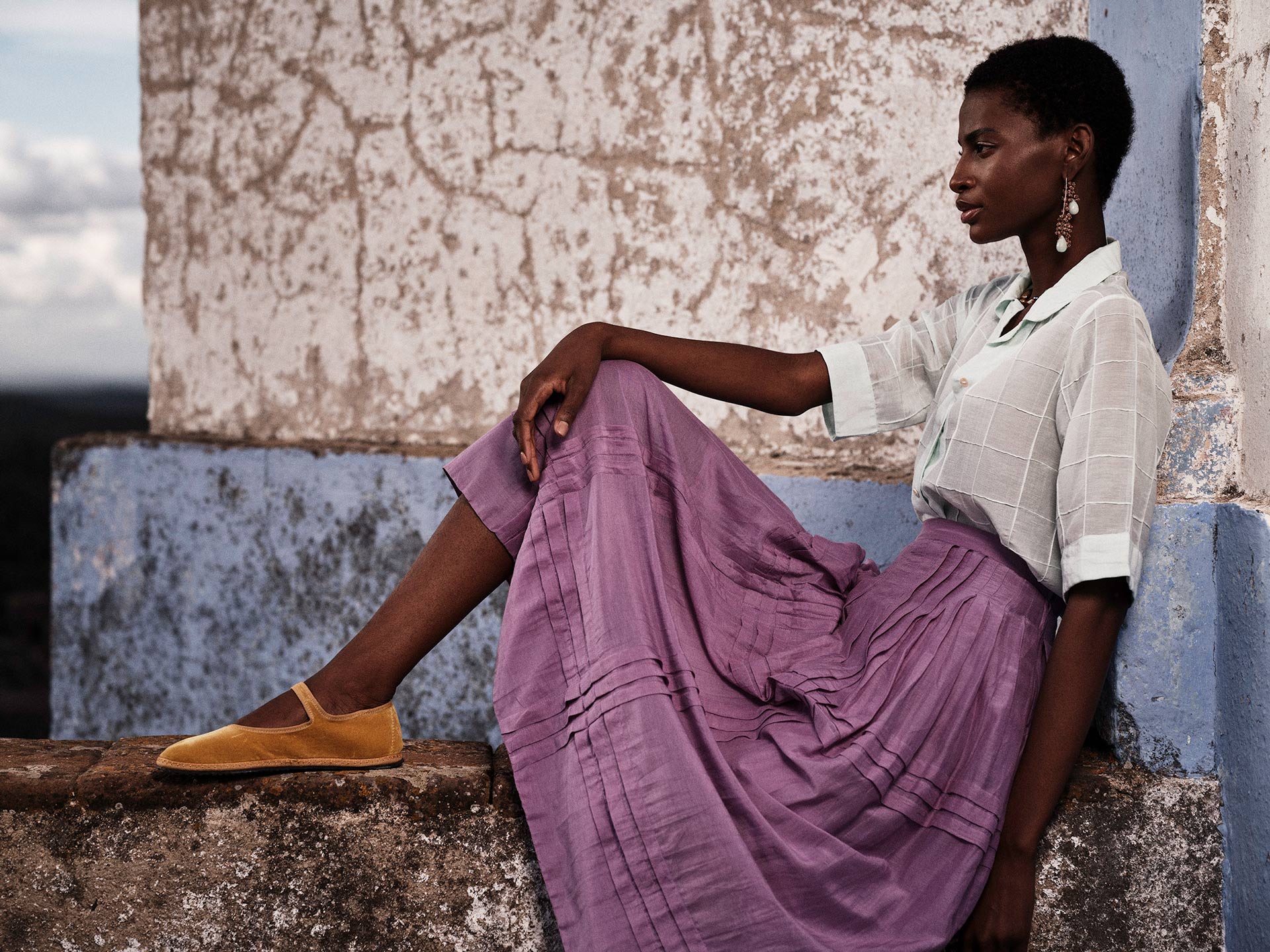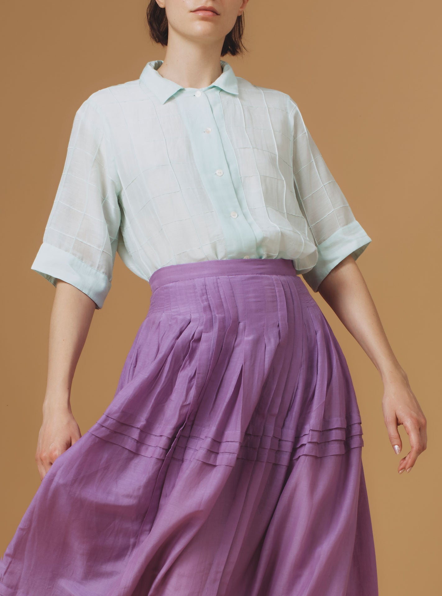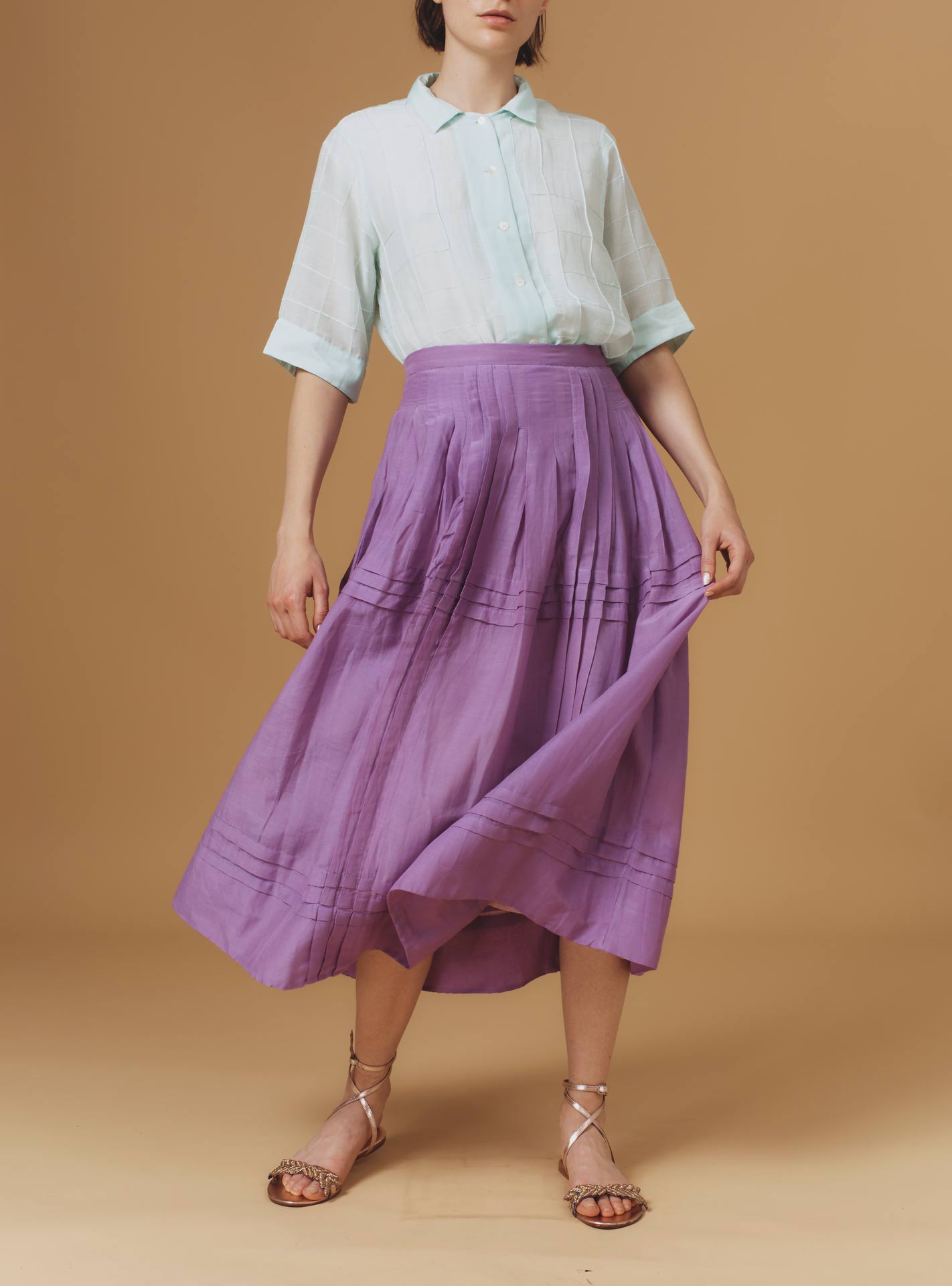We like it very much paired with our ZAZOU skirt in Wisteria color, cut in the same fabric.