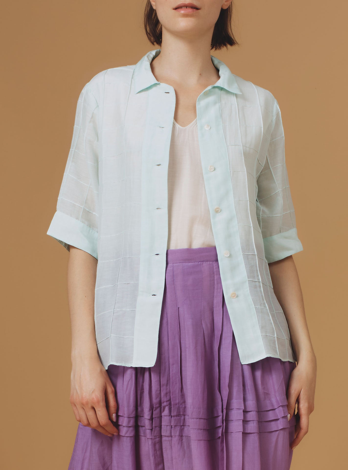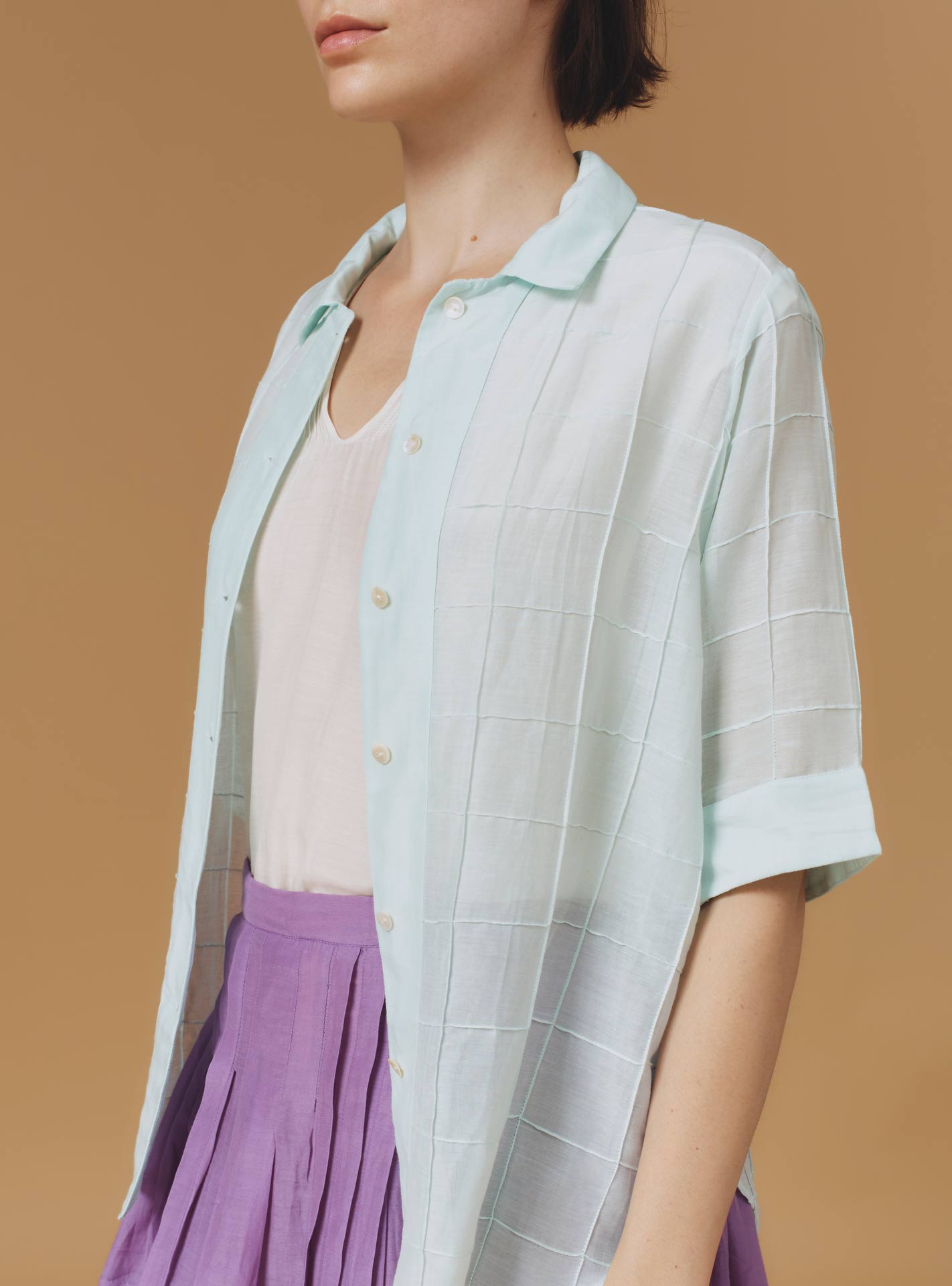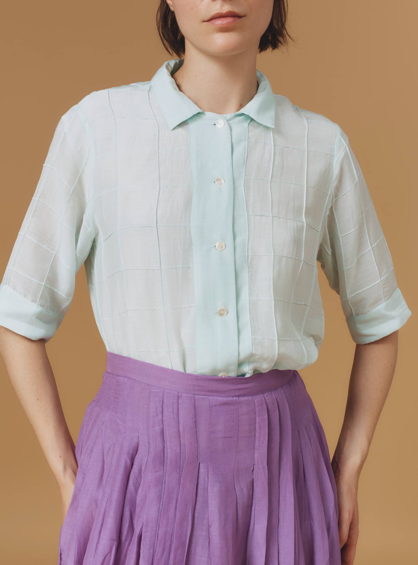 The ZOUK simple shirt will give you a Tom boy look. Crafted here in a soft cotton silk fabric, the pintucked check pattern has been engineered and created exclusively for the brand.